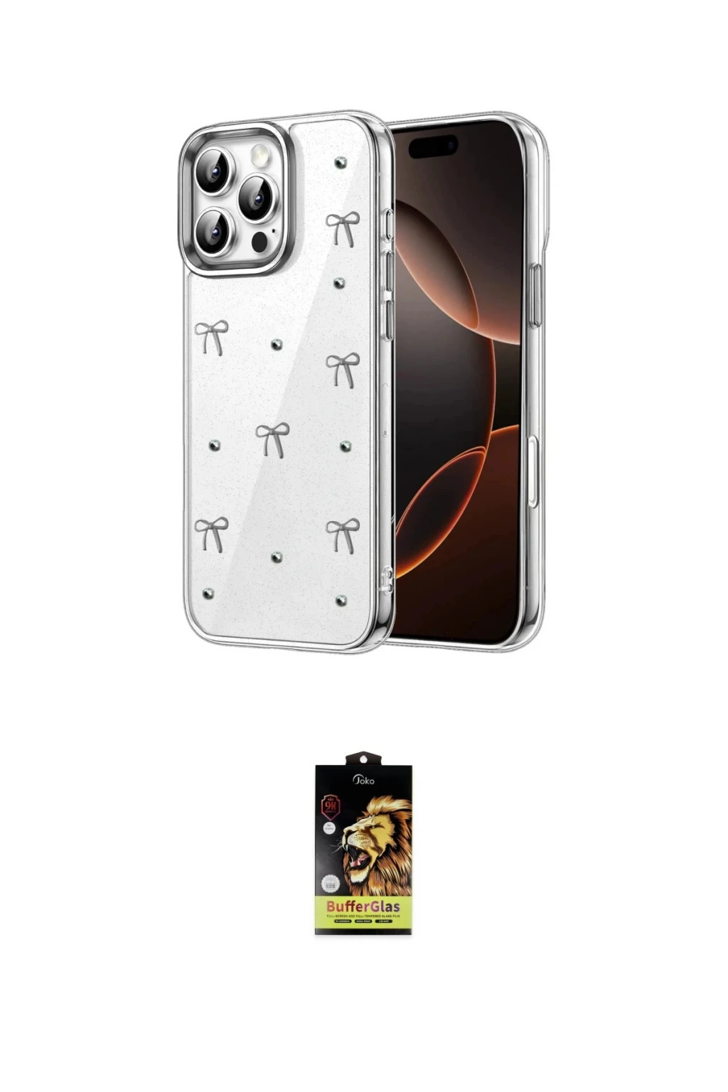 iPhone 16 Pro Max Kılıf Yörünge Form - Siyah Buffer Cam Ekran Koruyucu, iPhone 16 Pro Max modeli için kılıf ve ekran koruyucuyu bir araya getiren uyumlu bir settir. Kılıfta Desen 1 tonu ile görünümü tamamlar, ekran koruyucu ile günlük kullanımda dengeli koruma sunar. Newface Apple iPhone 16 Pro Max Fiyonk Desenli Kapak - Desen 1 cihazın gövdesini desteklerken, Joko iPhone 16 Pro Max Buffer Cam Ekran Koruyucu - Siyah ekranı çizilme ve darbelere karşı tamamlayıcı koruma sağlar. Tek paketle hem görünümü hem de temel korumayı hızlıca tamamlayabilirsiniz.