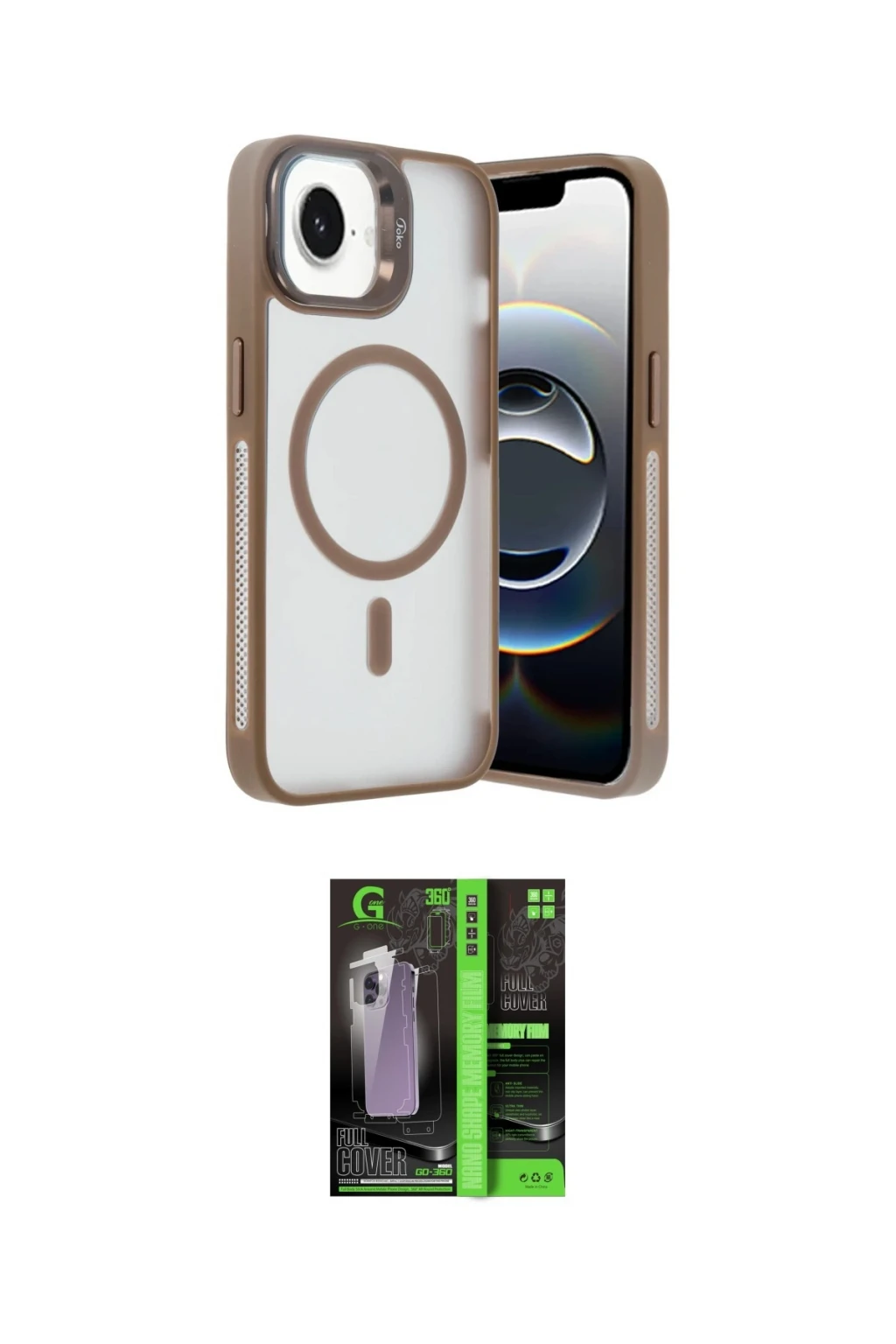 iPhone 16E Kılıf Akış Form - Şeffaf 360 Full Body Arka Koruyucu, iPhone 16E modeli için kılıf ve ekran koruyucuyu bir araya getiren uyumlu bir settir. Kılıfta Gold tonu ile görünümü tamamlar, ekran koruyucu ile günlük kullanımda dengeli koruma sunar. Joko iPhone 16E Flet Lens Magsafe Kapak - Gold cihazın gövdesini desteklerken, Newface iPhone 16E 360 Full Body Arka Koruyucu ekranı çizilme ve darbelere karşı tamamlayıcı koruma sağlar. Tek paketle hem görünümü hem de temel korumayı hızlıca tamamlayabilirsiniz.
