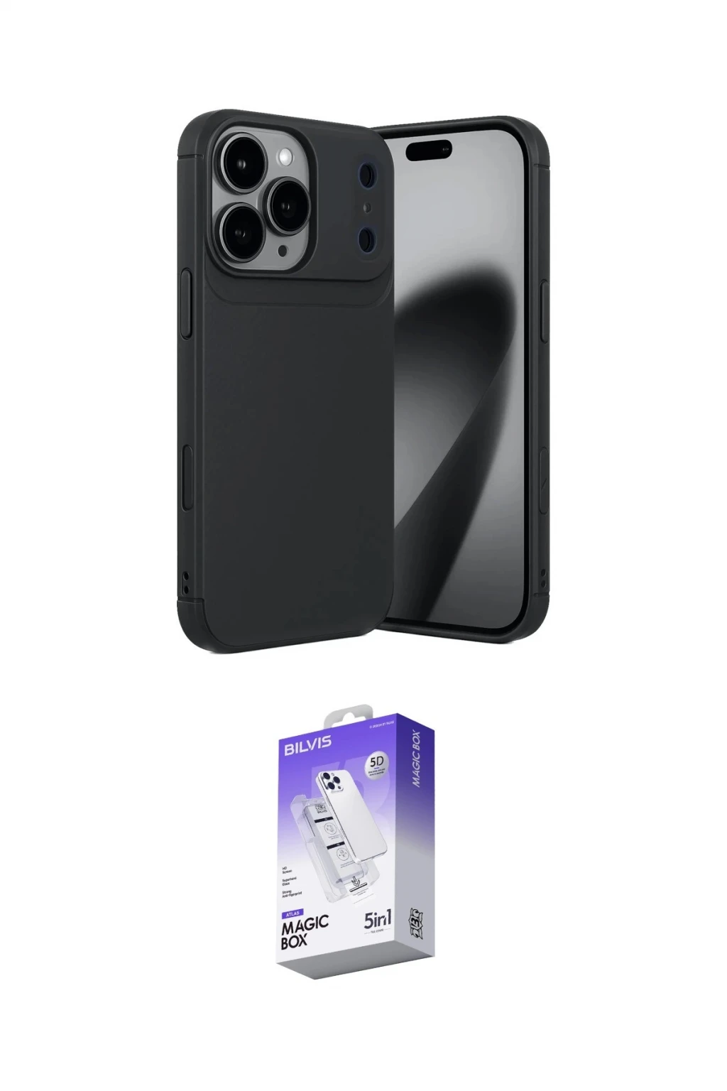 iPhone 17 Pro Max Kılıf Eksen Form Prime - Siyah Bilvis 5in1 3D Magic Cam Ekran Koruyucu, iPhone 17 Pro Max modeli için kılıf ve ekran koruyucuyu bir araya getiren uyumlu bir settir. Kılıfta Siyah tonu ile görünümü tamamlar, ekran koruyucu ile günlük kullanımda dengeli koruma sunar. Newface Apple iPhone 17 Pro Max Auto Focus Karbon Kapak - Siyah cihazın gövdesini desteklerken, Newface Apple iPhone 17 Pro Max Bilvis 5in1 3D Magic Cam Ekran Koruyucu - Siyah ekranı çizilme ve darbelere karşı tamamlayıcı koruma sağlar. Tek paketle hem görünümü hem de temel korumayı hızlıca tamamlayabilirsiniz.