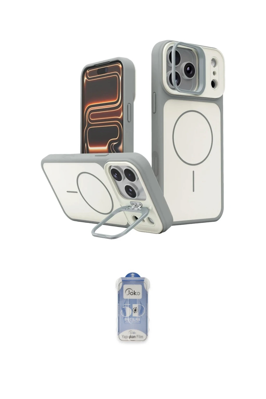 iPhone 17 Pro Max Kılıf İz Modern Prime - Siyah Joko Magic 5D Cam, iPhone 17 Pro Max modeli için kılıf ve ekran koruyucuyu bir araya getiren uyumlu bir settir. Kılıfta Beyaz tonu ile görünümü tamamlar, ekran koruyucu ile günlük kullanımda dengeli koruma sunar. Joko Apple iPhone 17 Pro Max Pale Magsafe Standlı Kapak - Beyaz cihazın gövdesini desteklerken, Joko iPhone 17 Pro Max Joko Magic 5D Cam ekranı çizilme ve darbelere karşı tamamlayıcı koruma sağlar. Tek paketle hem görünümü hem de temel korumayı hızlıca tamamlayabilirsiniz.