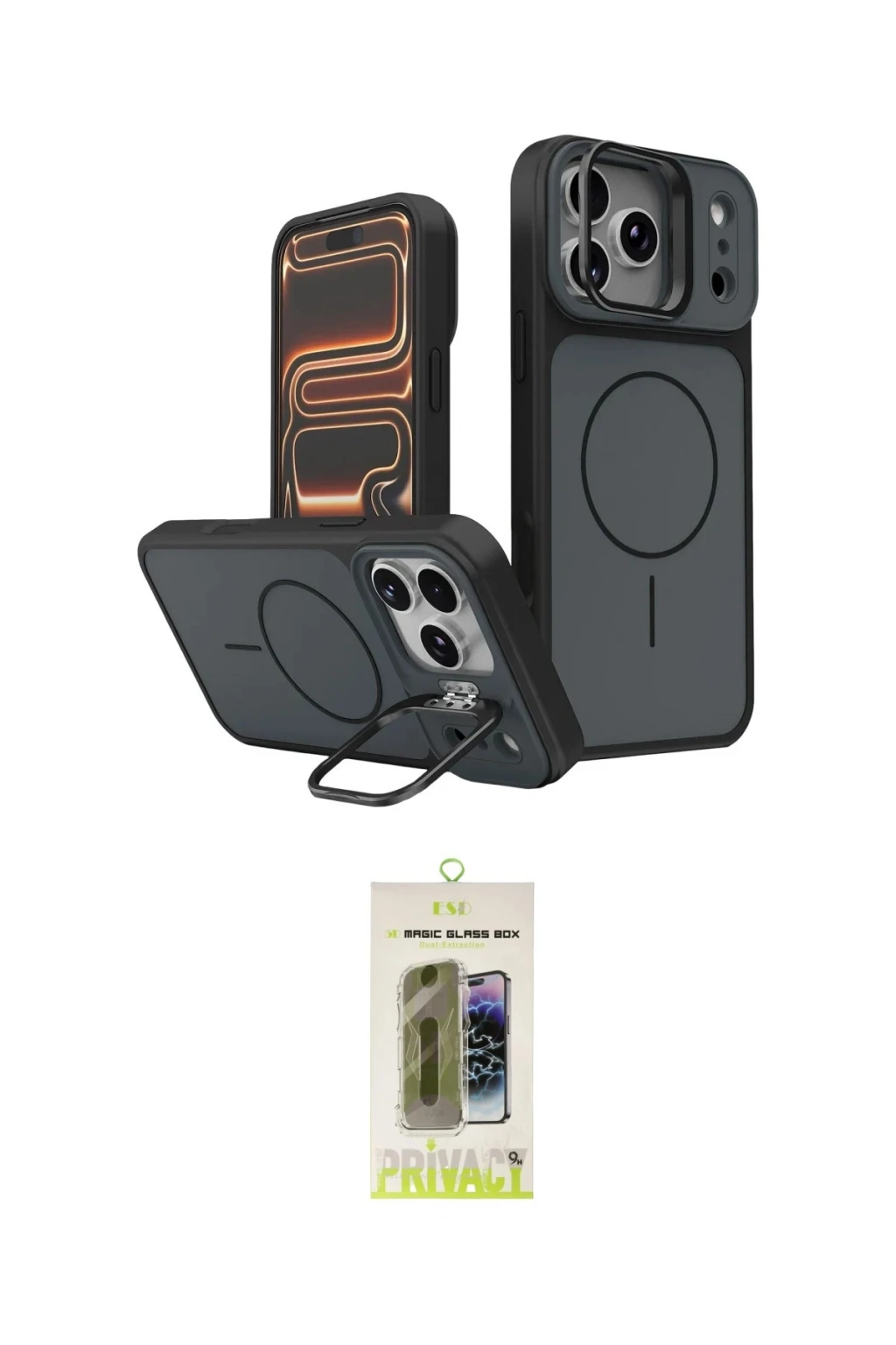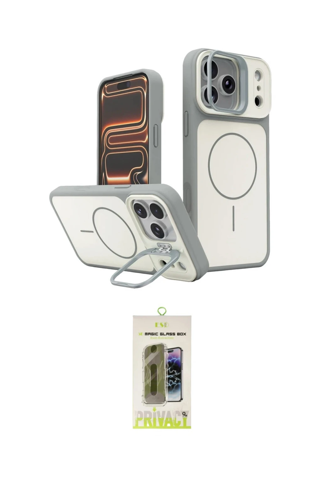 iPhone 17 Pro Max Kılıf İz Modern Prime - Siyah Joko Magic 5D Hayalet Cam, iPhone 17 Pro Max modeli için kılıf ve ekran koruyucuyu bir araya getiren uyumlu bir settir. Kılıfta Beyaz tonu ile görünümü tamamlar, ekran koruyucu ile günlük kullanımda dengeli koruma sunar. Joko Apple iPhone 17 Pro Max Pale Magsafe Standlı Kapak - Beyaz cihazın gövdesini desteklerken, Joko iPhone 17 Pro Max Joko Magic 5D Hayalet Cam ekranı çizilme ve darbelere karşı tamamlayıcı koruma sağlar. Tek paketle hem görünümü hem de temel korumayı hızlıca tamamlayabilirsiniz.