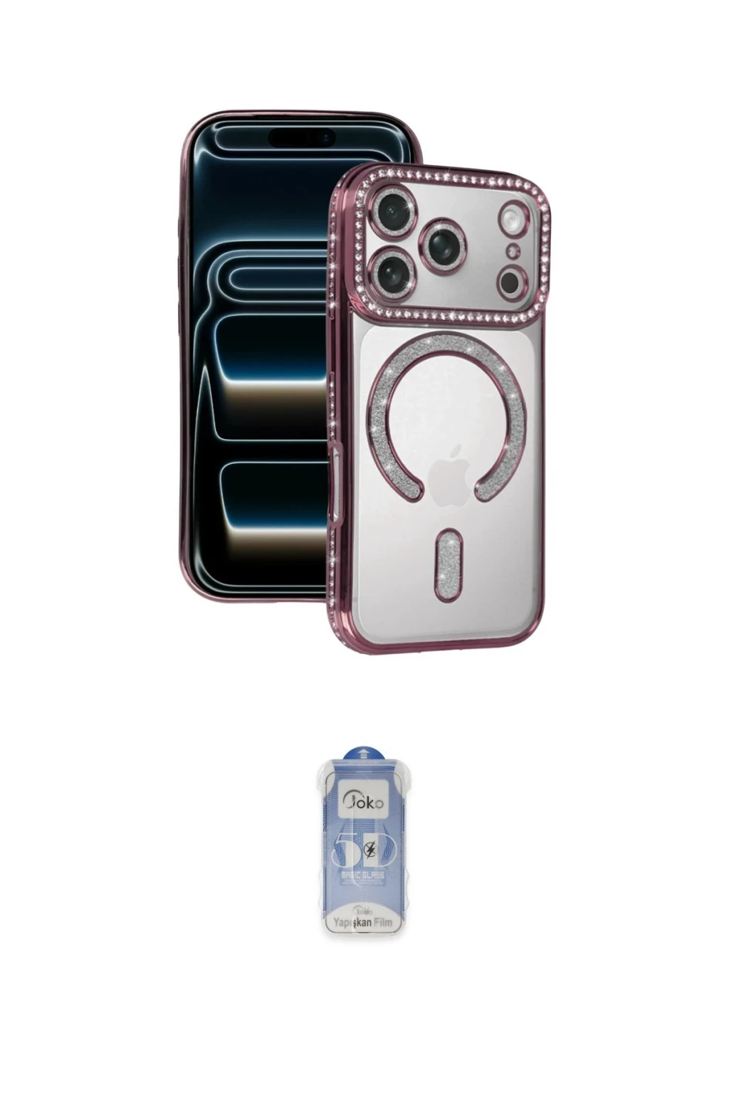 iPhone 17 Pro Max Kılıf Zirve Doku Prime - Siyah Joko Magic 5D Cam, iPhone 17 Pro Max modeli için kılıf ve ekran koruyucuyu bir araya getiren uyumlu bir settir. Kılıfta Derin Mor tonu ile görünümü tamamlar, ekran koruyucu ile günlük kullanımda dengeli koruma sunar. Newface Apple iPhone 17 Pro Max Joke Simli Magneticsafe Kılıf - Derin Mor cihazın gövdesini desteklerken, Joko iPhone 17 Pro Max Joko Magic 5D Cam ekranı çizilme ve darbelere karşı tamamlayıcı koruma sağlar. Tek paketle hem görünümü hem de temel korumayı hızlıca tamamlayabilirsiniz.