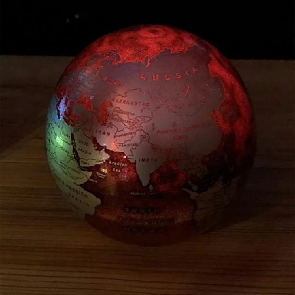 Işıklı Dönen DünyaIşıklı dönen dünya haritası görünümü ve tasarımı ile oldukça dikkat çekmektedir.Dönen dünya küresi ışıklı olup geceliğin ışığını yaktığınız zaman oldukça hoş bir görüntü verir.Sevdiklerinize hediye edebileceğiniz Işıklı dönen dünya.Çocuklarınızın coğrafi bilgisini dünya küresi ile çocuklarınıza daha eğlenceli anlatabilirsiniz.ışıklı dünya dekoratif olarak ofisinizde evinizde istediğiniz yerde kullanabilirsiniz.Işıklı Dönen Dünya, Dönen Dünya, Pilli Dönen Dünya Ürün Özellikleri:* Kaliteli sert plastik malzemeden üretilmiştir.* 1 Adet AA pil ile çalışmaktadır.(Pil pakete dahil değildir.)* Işık Pili CR2032 Pil ile çalışmaktadır.(Pil pakete dahildir.)* 360 derece dönmektedir.* Dünya ışıklıdır dönerken renk değiştirmektedir.* Kaliteli ve net baskı kalitesi.* Düz ve sert zeminde rahatça dönmektedir.* Karışık renklerde gönderilmektedir.Pilli Işıklı Dönen Dünya, Işıklı Dünya, Dönen Dünya Küresi, Işıklı Dünya Küresi, Dünya Işıklı Ölçüsü: 14 cm