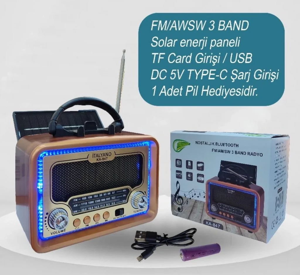 İtalyano Nostaljik, Bluetooth Bağlantılı, FM-AM-SW 3 Band Radyo