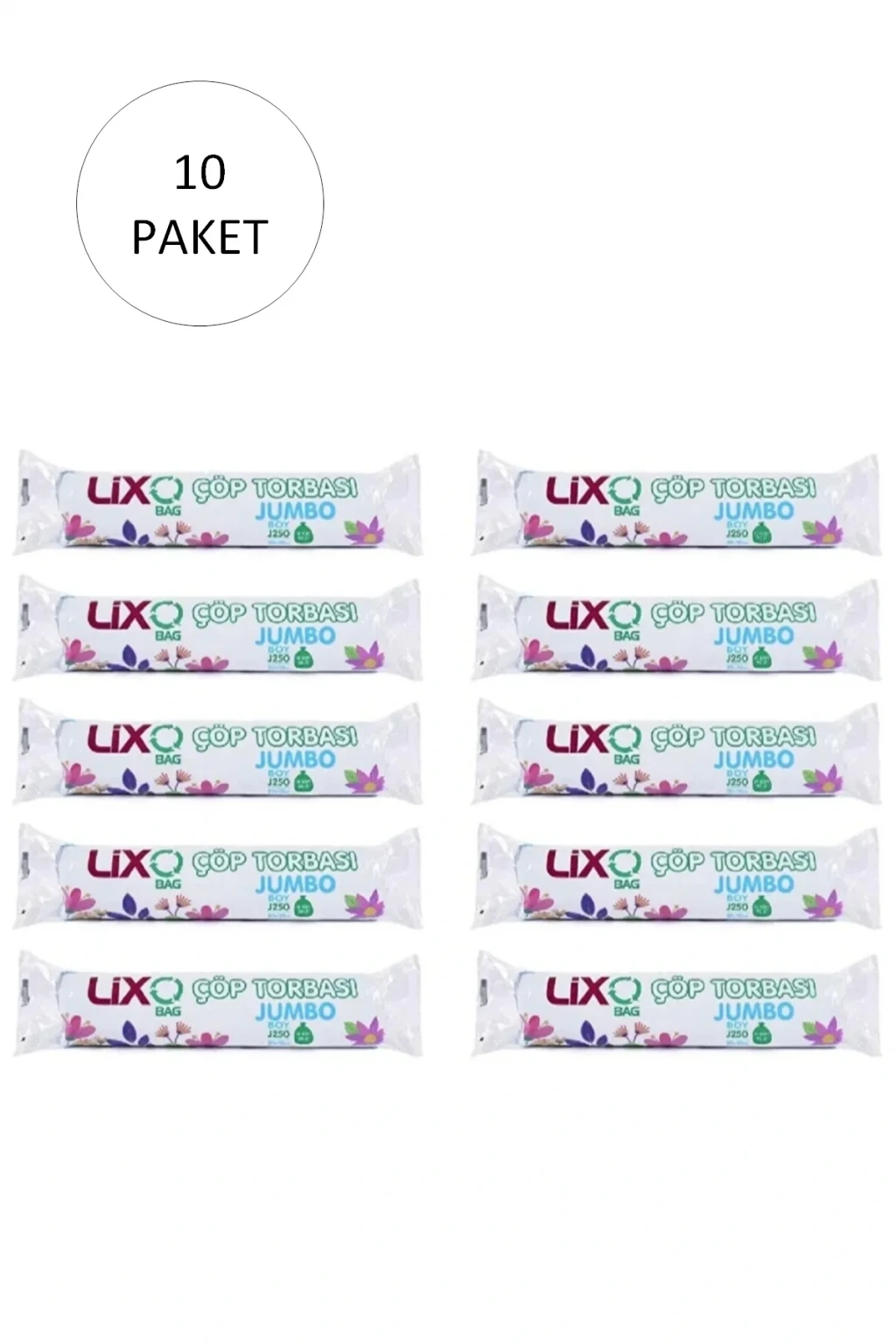 J-250 Jumbo Boy Çöp Torbası 80 x 110 cm 10 Lu Rulo x 10 Paket = 100 Adet (Mavi)
