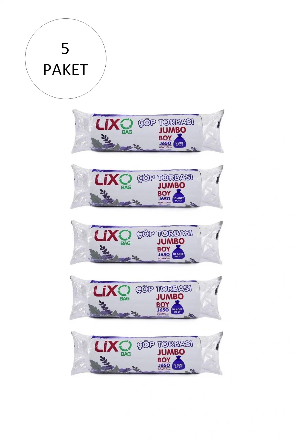 J-650 Jumbo Boy Çöp Torbası 80 x 110 cm 10 Lu Rulo x 5 Paket = 50 Adet (Siyah)