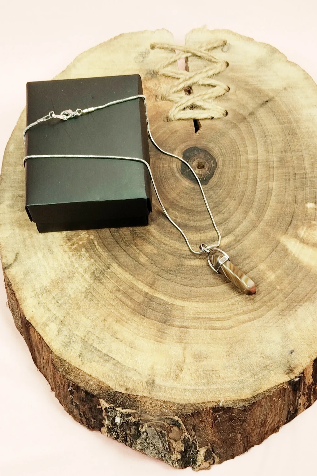 Kahverengi Akik Doğal Taşı Zincirli El Yapımı Tasarımlı Kolye Uç: 3,5 cm Zincir: 20 cm Kutulu