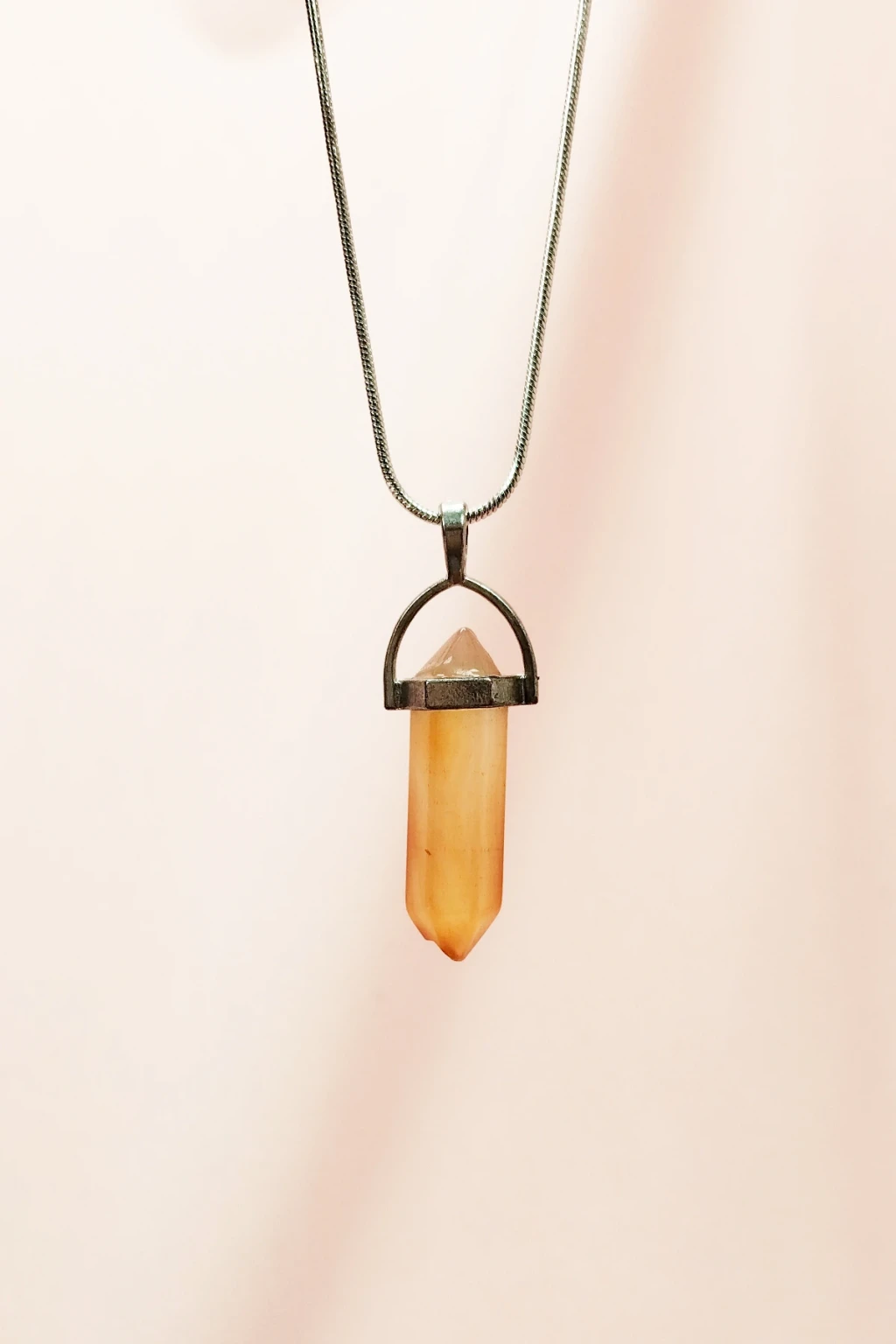 İEG® Pembe Akit Doğal Taşı Zincirli El Yapımı Tasarımlı Kolye Uç: 3,5 cm Zincir: 20 cm Kutulu