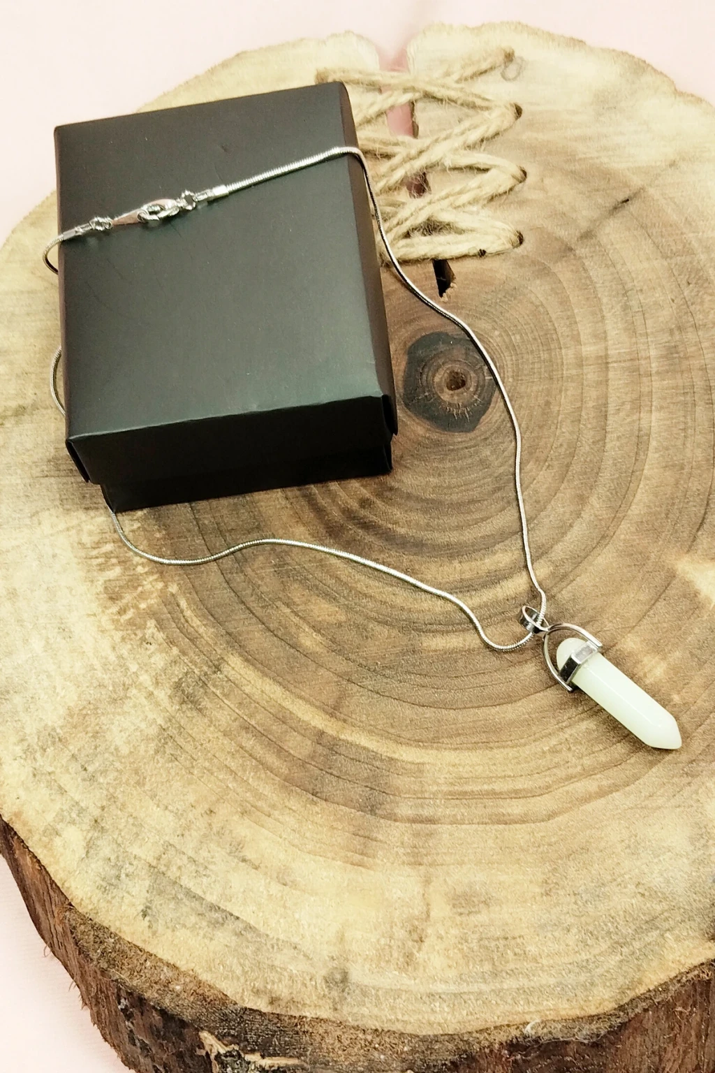 İEG® Kalsedon Doğal Taşı Zincirli El Yapımı Kolye Uç: 1,5 cm Zincir: 20 cm Kutulu