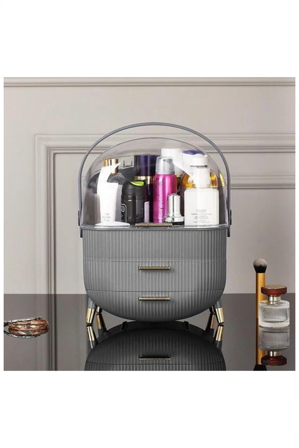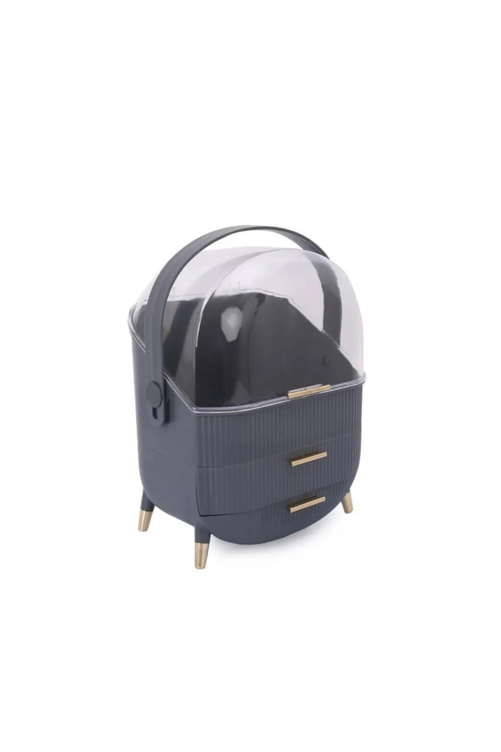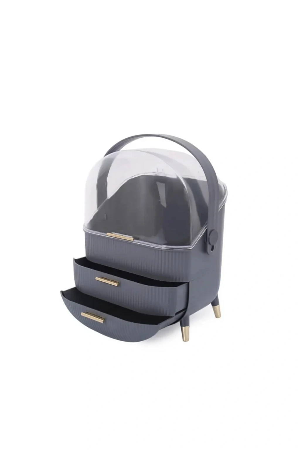 Kozmetik Makyaj Düzenleyici Organizer Gri Taşıma Kulplu Çekmeceli
