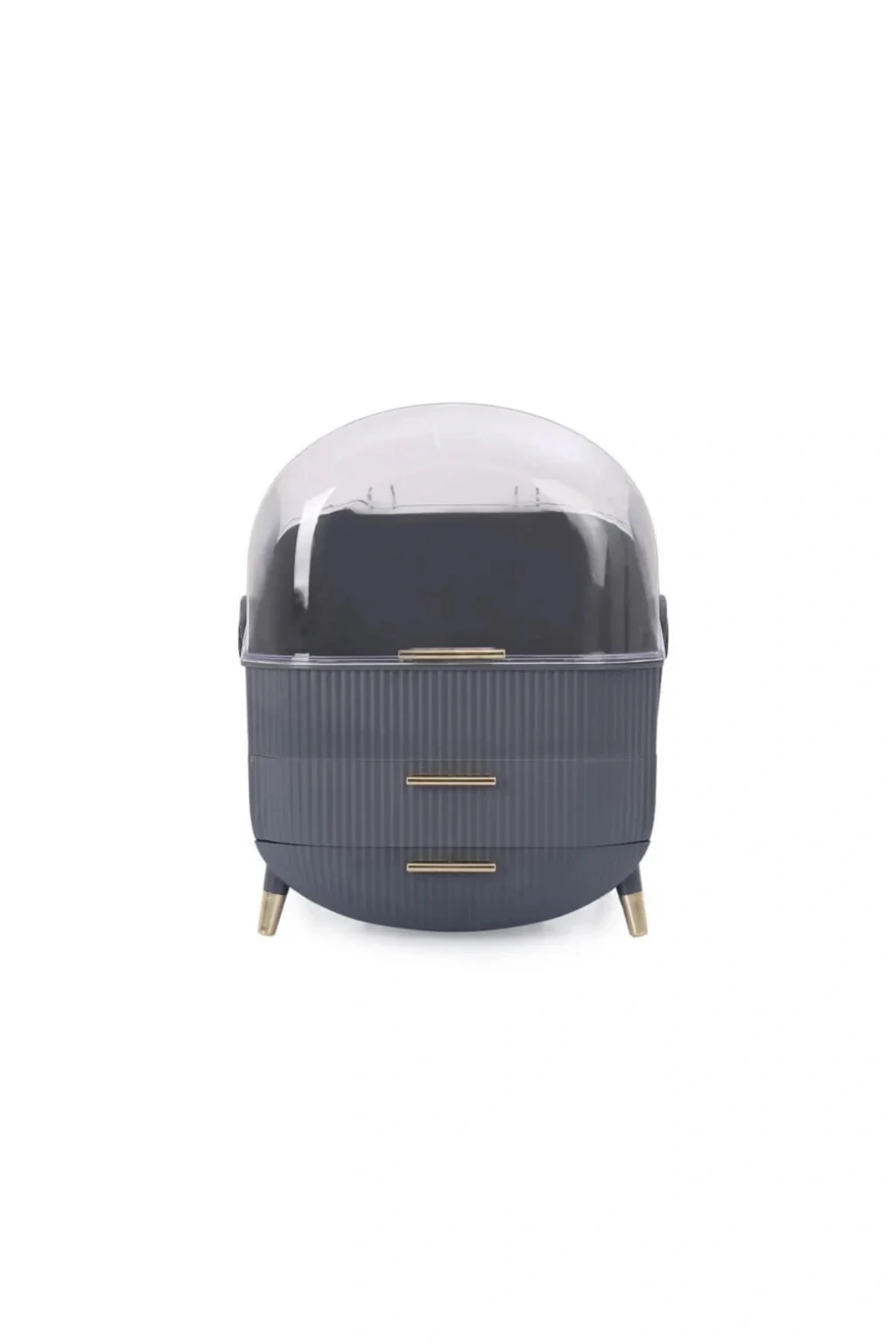 İEG® Kozmetik Makyaj Düzenleyici Organizer Gri Taşıma Kulplu Çekmeceli