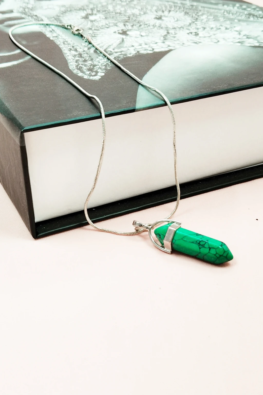 İEG® Yeşil Kuvars Doğal Taşı Zincirli El Yapımı Tasarımlı Kolye Uç: 3,5 cm Zincir: 20 cm Kutulu
