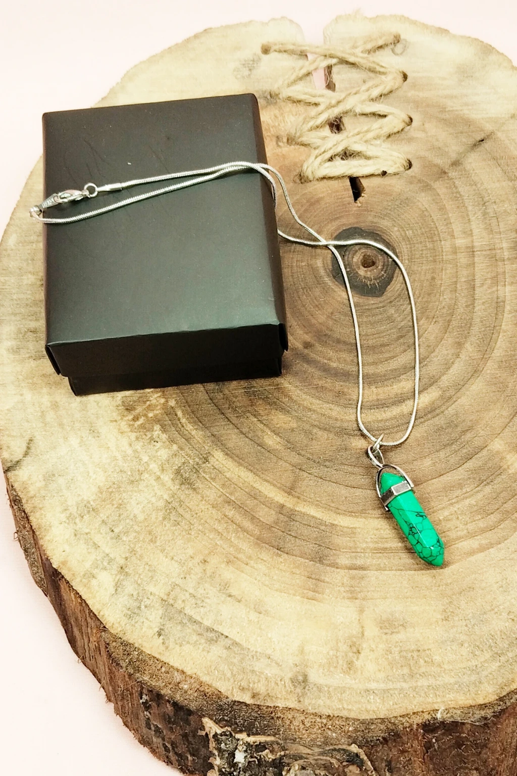 İEG® Turkuaz Doğal Taşı Zincirli El Yapımı Tasarımlı Kolye Uç: 3,5 cm Zincir: 20 cm Kutulu
