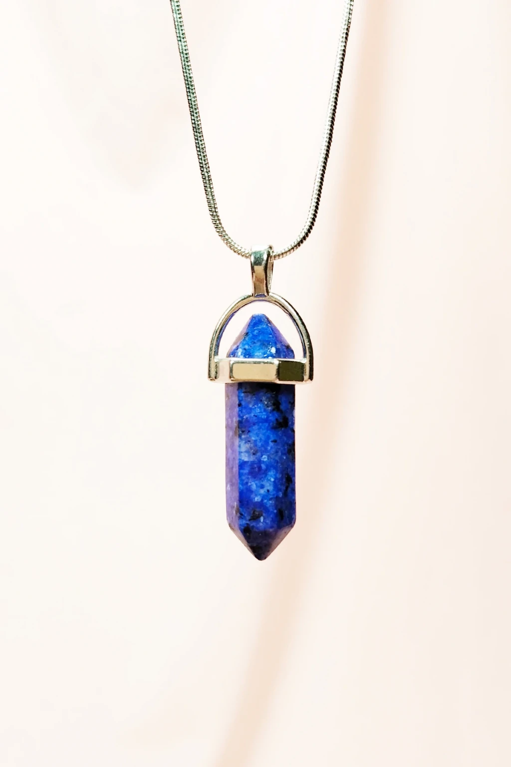 Lapis Lazuli Doğal Taşı Zincirli El Yapımı Tasarımlı Kolye Uç: 3,5 cm Zincir: 20 cm Kutulu