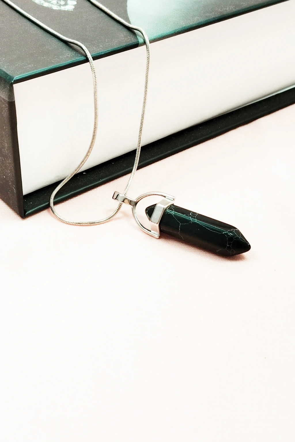 Mat Oniks Doğal Taşı Zincirli El Yapımı Tasarımlı Kolye Uç: 3,5 cm Zincir: 20 cm Kutulu