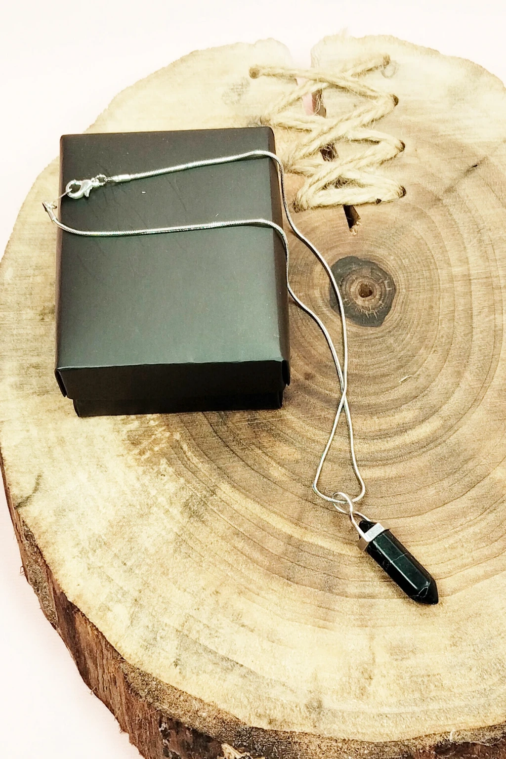 İEG® Kalsedon Doğal Taşı Zincirli El Yapımı Kolye Uç: 1,5 cm Zincir: 20 cm Kutulu
