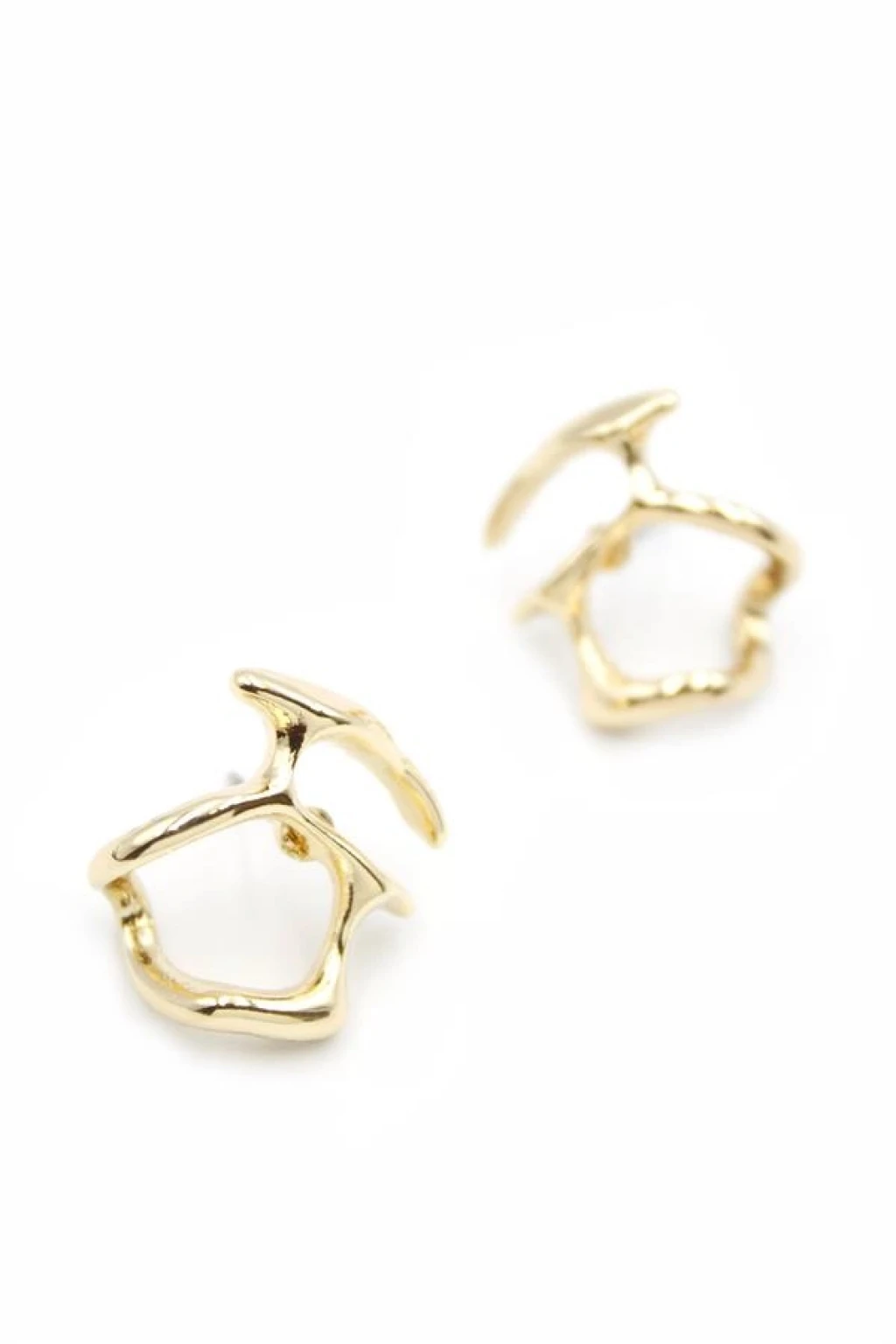 925 Ayar Gümüş Çivi Pirinç Gold Renk Üçgen Model Kadın Küpe Seti