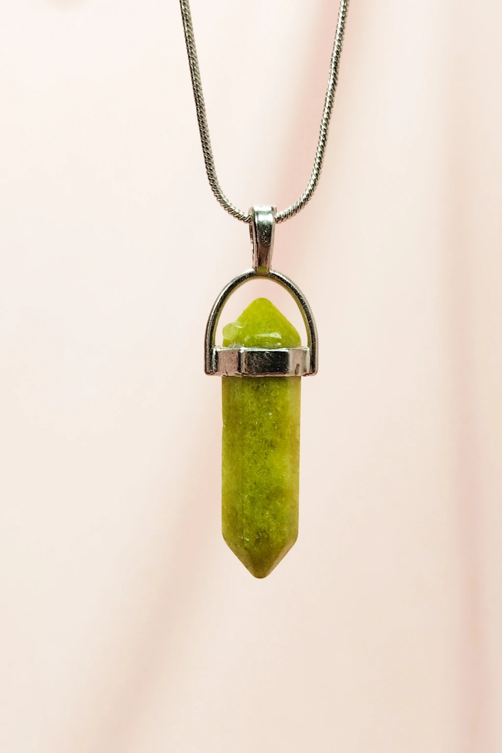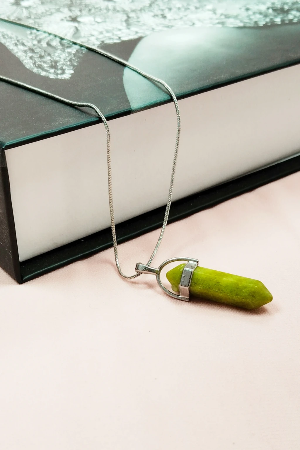 İEG® Yeşil Kuvars Doğal Taşı Zincirli El Yapımı Tasarımlı Kolye Uç: 3,5 cm Zincir: 20 cm Kutulu