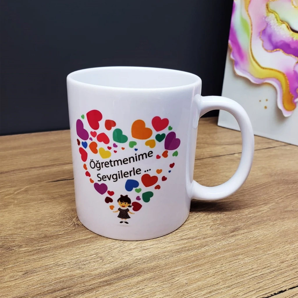 Baskılı Kupa Bardak Üzerinde Bulunan Öğretmenime Sevgililerle Baskısı Ile Öğretmeninize Eşşiz Bir Hediye.