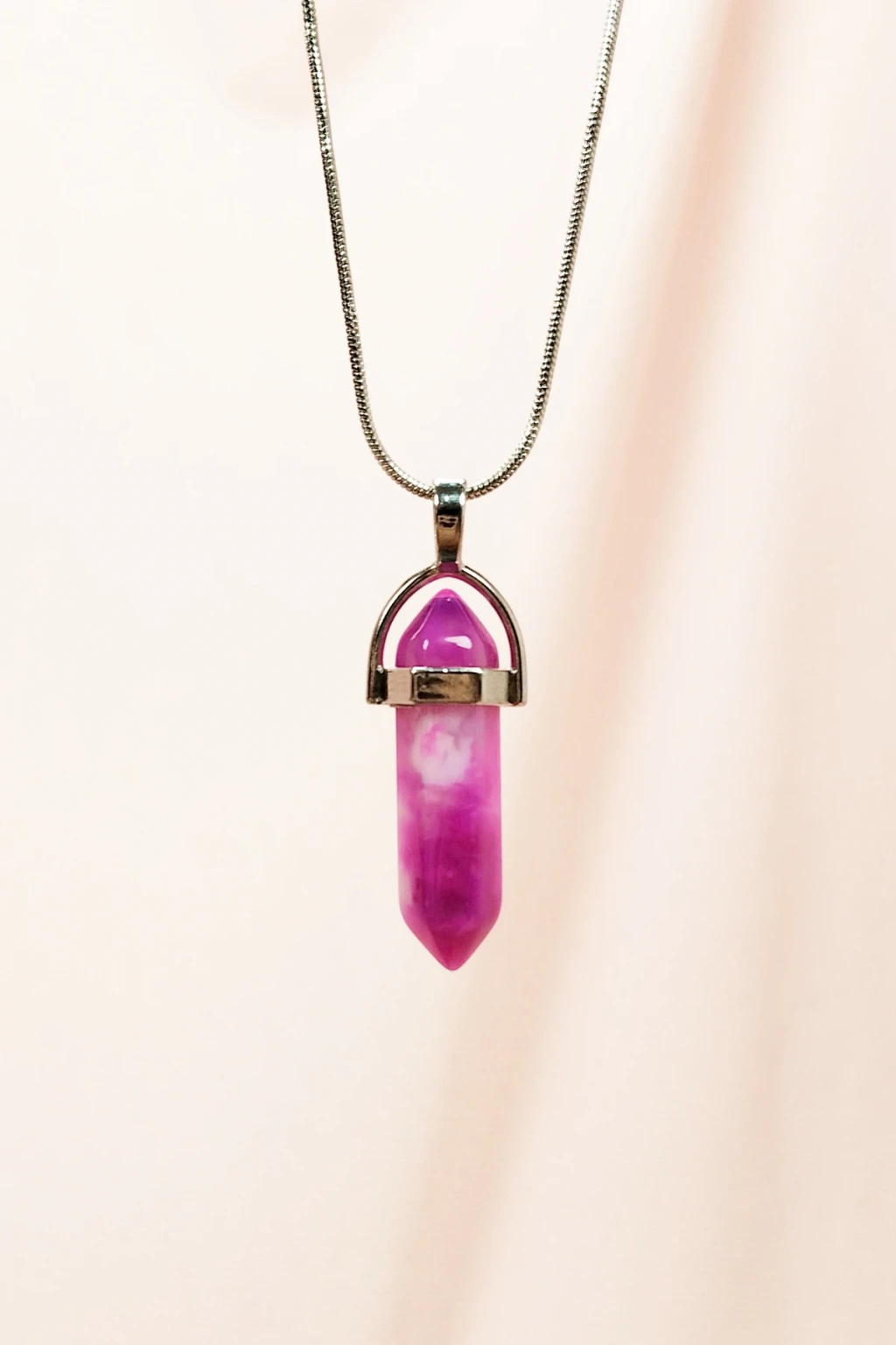 Pembe Akit Doğal Taşı Zincirli El Yapımı Tasarımlı Kolye Uç: 3,5 cm Zincir: 20 cm Kutulu