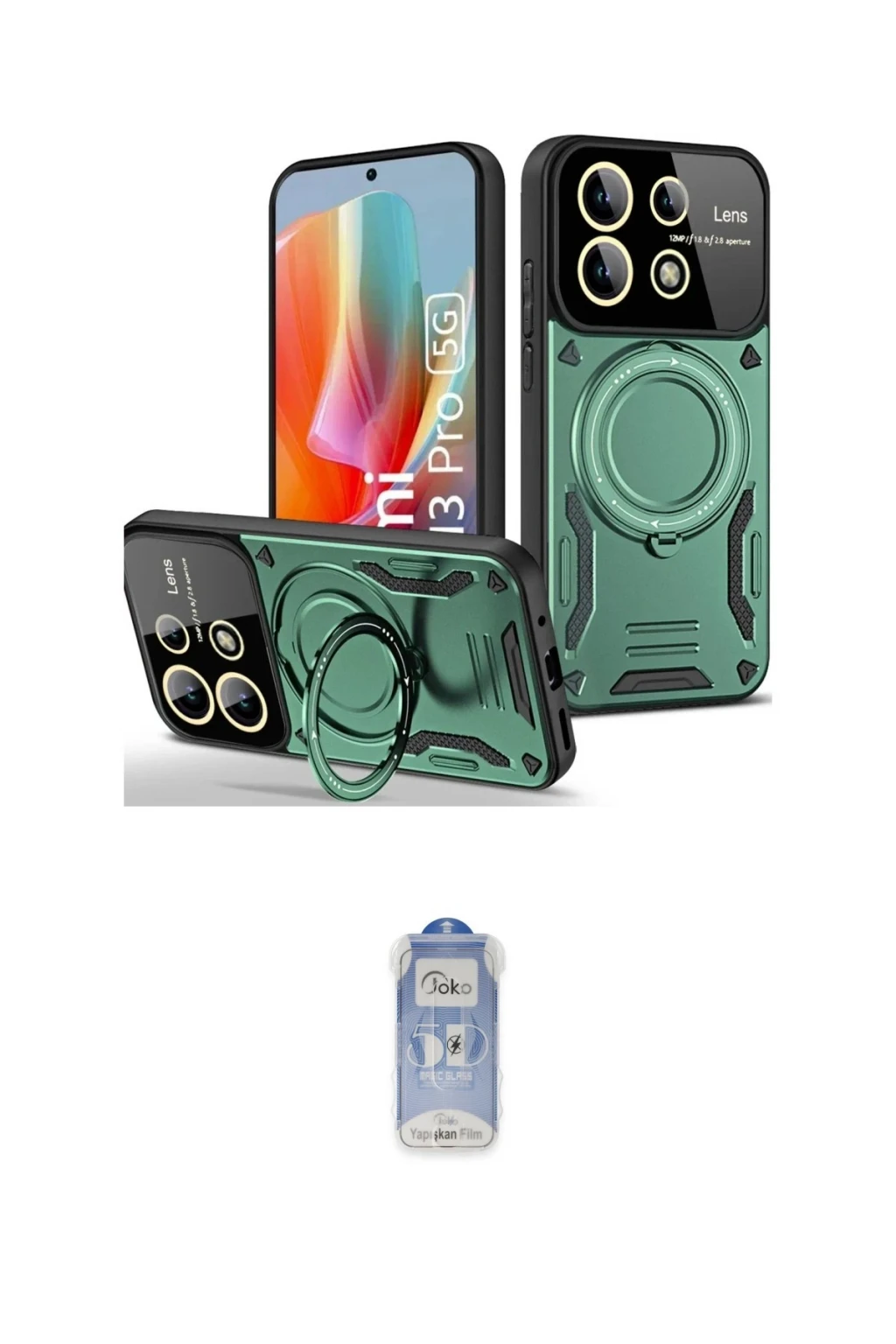 Redmi Note 13 Pro 4G Kılıf Kıvılcım Modern Serisi - Siyah Joko Magic 5D Cam, Redmi Note 13 Pro 4G modeli için kılıf ve ekran koruyucuyu bir araya getiren uyumlu bir settir. Kılıfta Koyu Yeşil tonu ile görünümü tamamlar, ekran koruyucu ile günlük kullanımda dengeli koruma sunar. Newface Xiaomi Redmi Note 13 Pro 4G Kılıf Joy Lens Standlı Kapak - Koyu Yeşil cihazın gövdesini desteklerken, Joko Xiaomi Redmi Note 13 Pro 4G Joko Magic 5D Cam ekranı çizilme ve darbelere karşı tamamlayıcı koruma sağlar. Tek paketle hem görünümü hem de temel korumayı hızlıca tamamlayabilirsiniz.