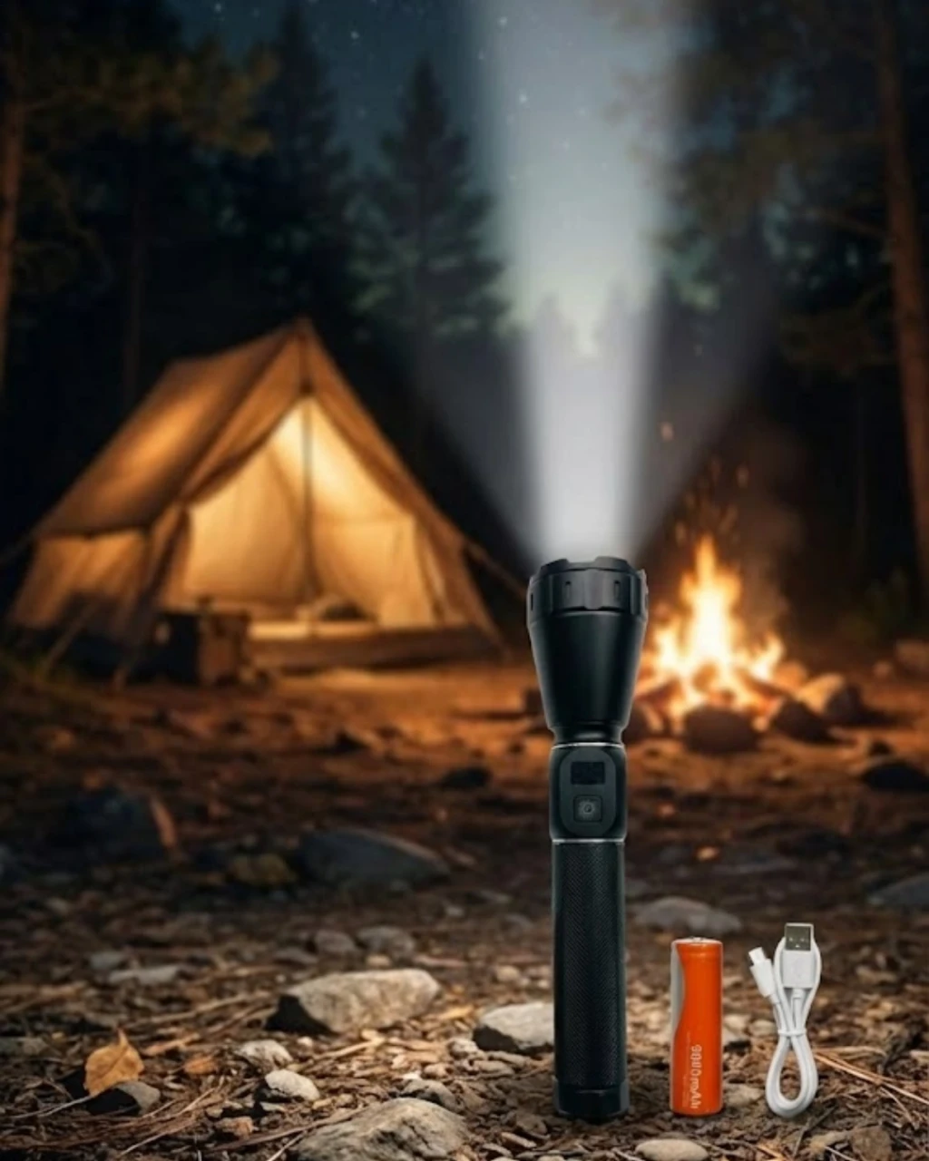 Güçlü LED teknolojisi ile tasarlanan bu el feneri, yüksek aydınlatma performansı sunar. 60W gücü sayesinde geniş alanlarda etkili sonuç verir.9000mAh batarya kapasitesi uzun süreli kullanım sağlar. USB şarj özelliği ile pratik şekilde enerji doldurulabilir. Dayanıklı gövde yapısı uzun ömürlü kullanım sunar.Set içerisinde yer alan koruma çantası ürünü darbelere karşı korur. Kamp, doğa aktiviteleri ve acil durumlar için ideal bir tercihtir.