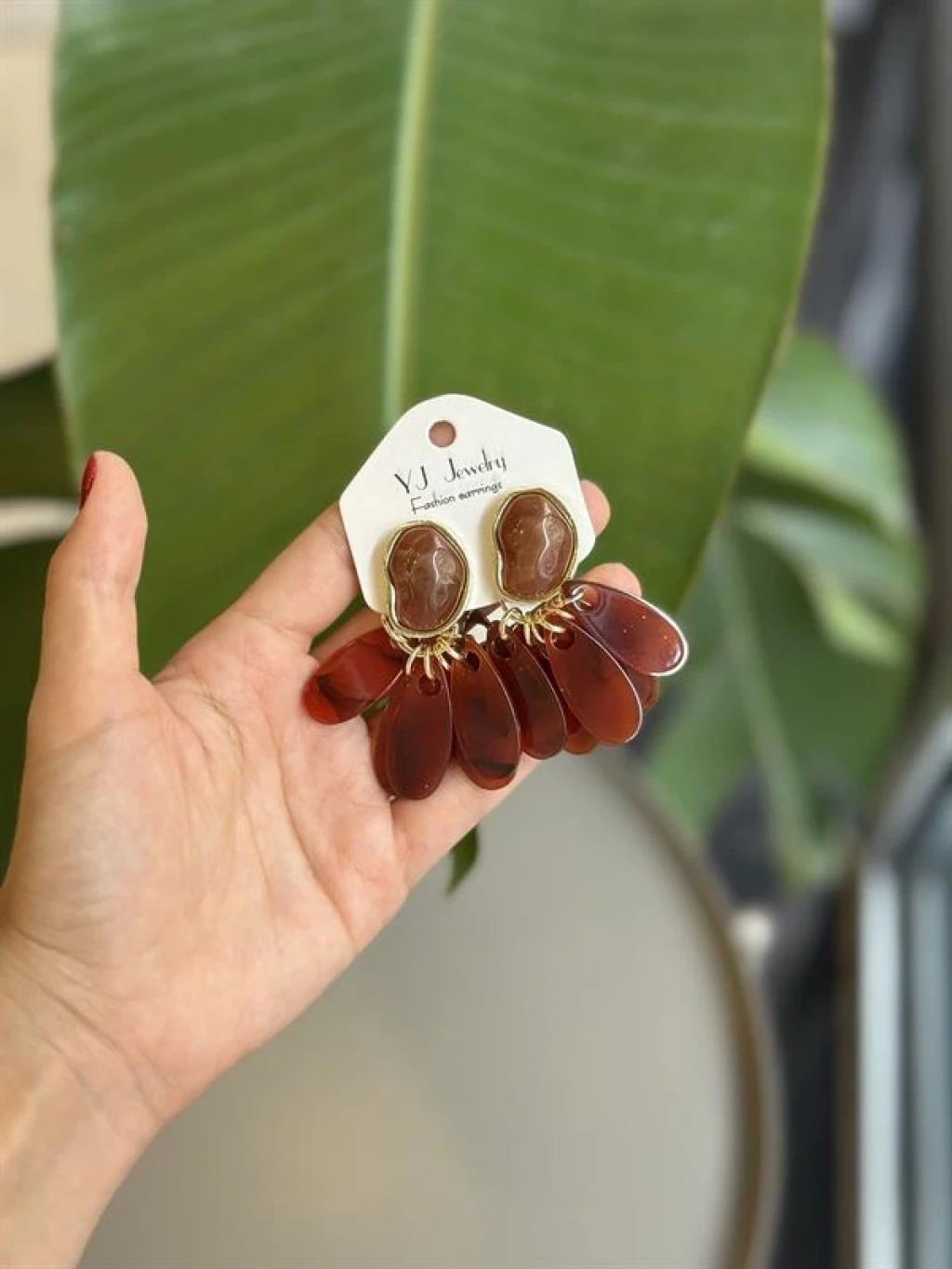 İEG® Taşlı Küpe - Kahverengi
