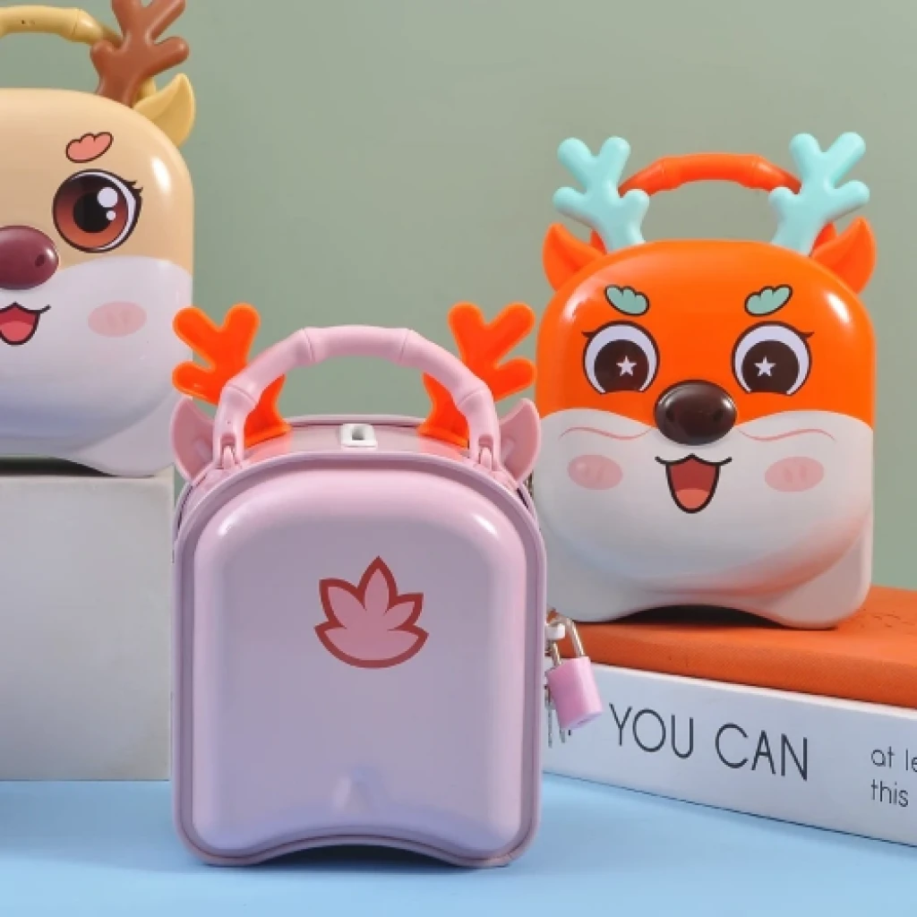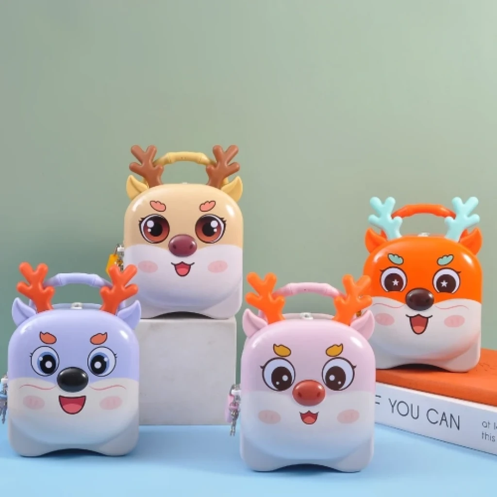 SEVİMLİ GEYİK KUMBARA “Çocuklarınızın Eğlenceli Tasarruf Arkadaşı!”Sevimli Geyik Kumbara, eşsiz tasarımı ve şık görünümü ile doğum günleri için en iyi hediye seçeneğidir. PP plastik malzemeden üretilmiştir ve kilitli anahtarlı bir mekanizmaya sahiptir. Çocuklarınızın eğlenceli bir şekilde para biriktirmelerine yardımcı olur. Bu kumbara, blister paketleme ile sunulmaktadır.Paket İçeriği1 adet sevimli geyik kumbara