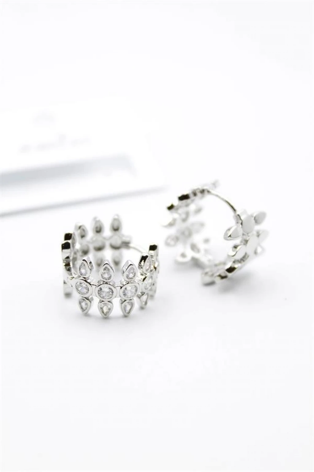 Taşlı Halka Küpe - Gümüş