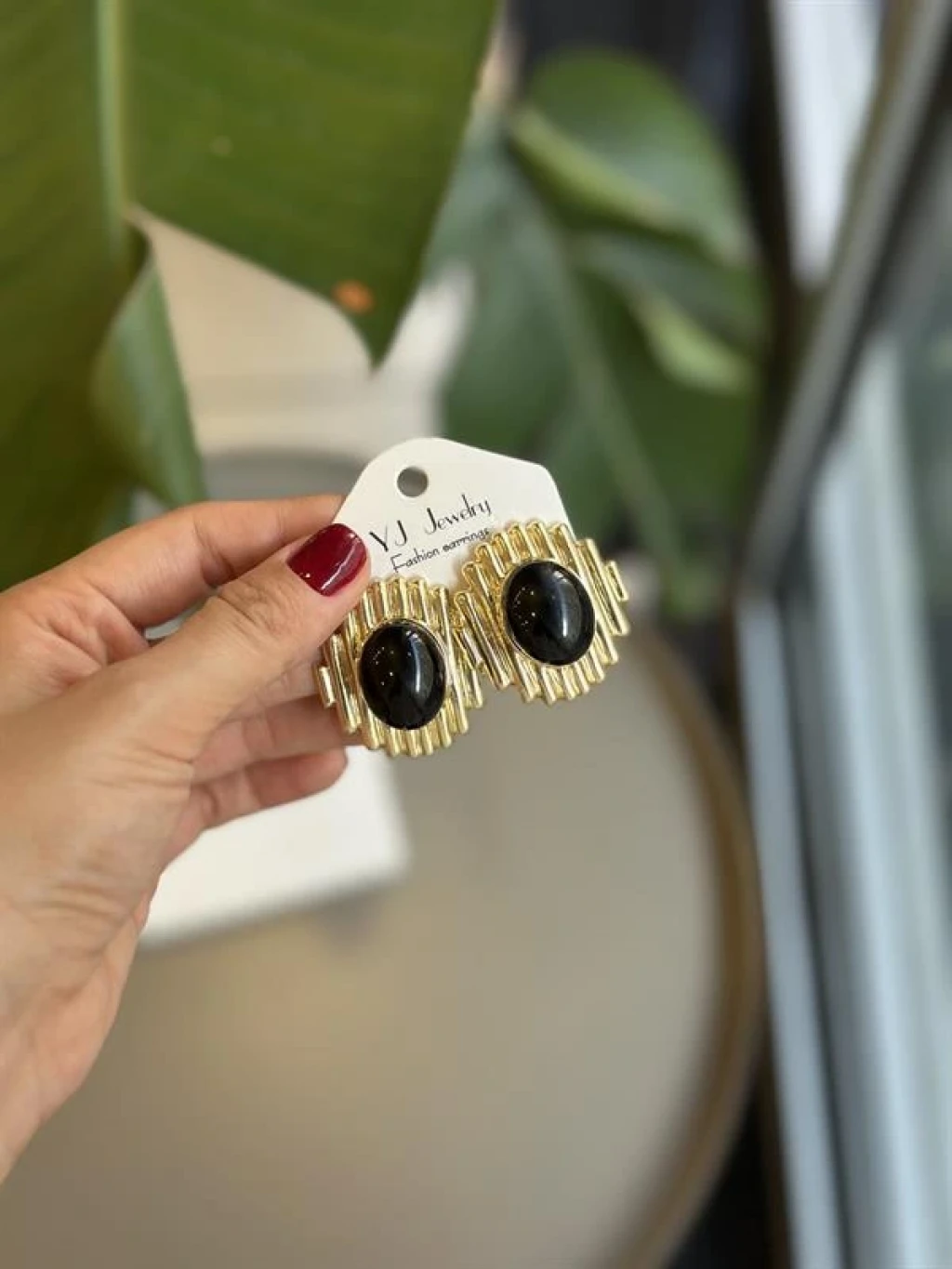 Taşlı Küpe - Siyah