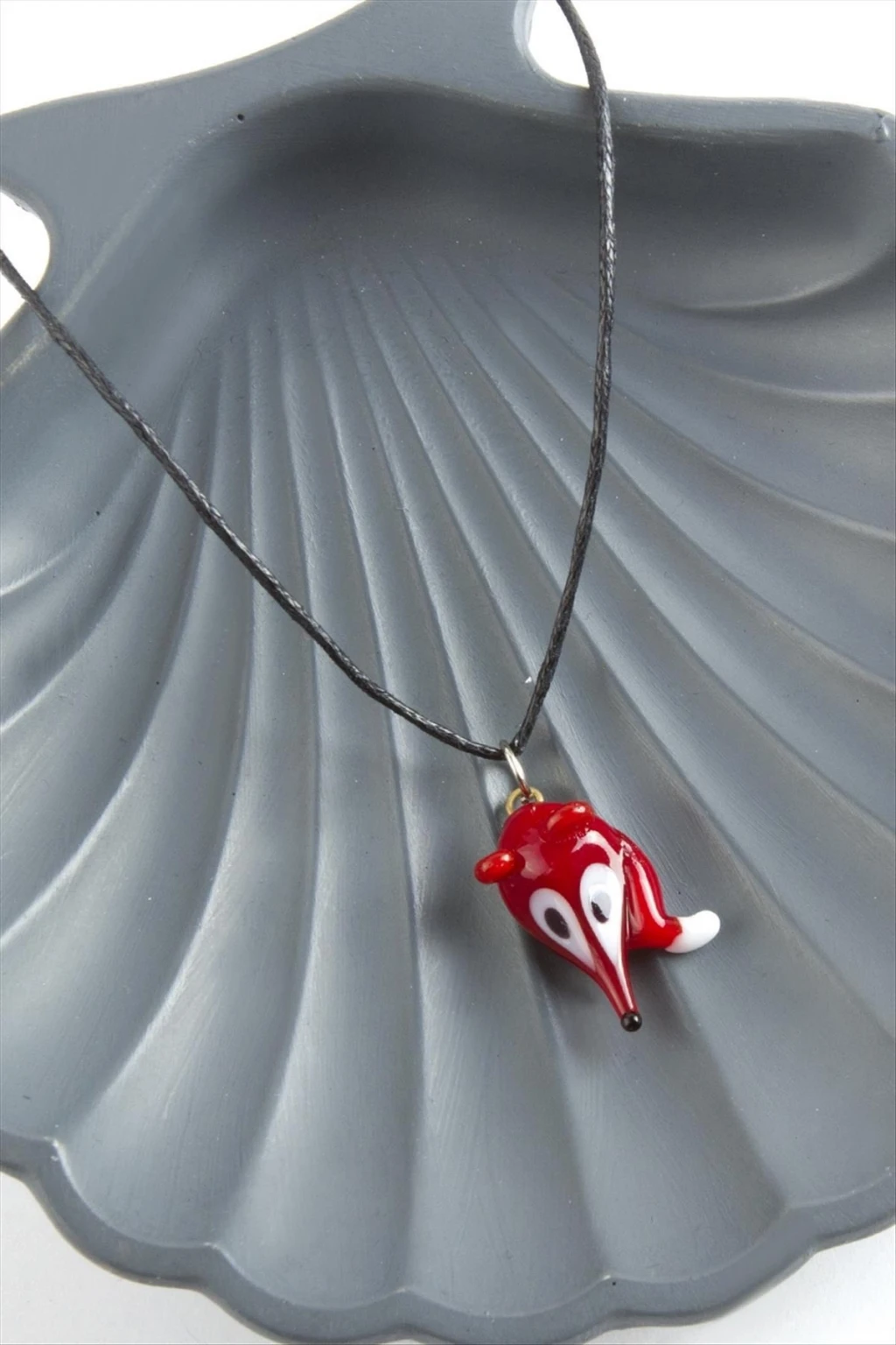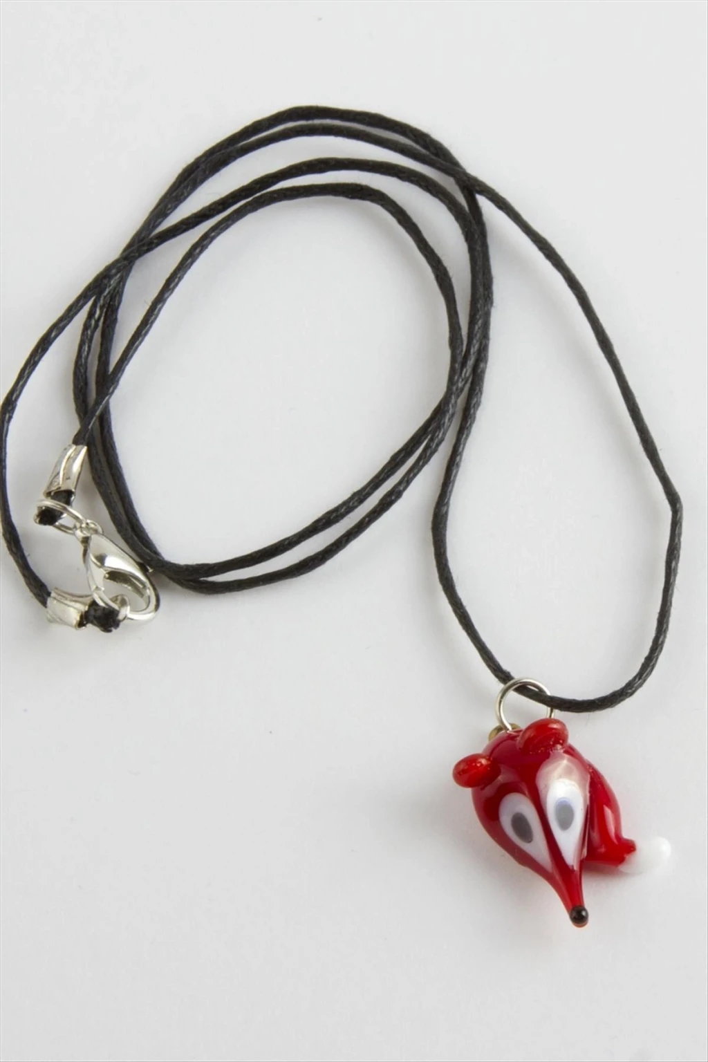 Cam Kolye; Kordonu vinlex deridir. Ürün ustalarımız tarafından atölyemizde tek tek el işçiliği ile üretilmektedir. İmalatımız da yerli cam ve orijinal italyan cam kullanılmaktadır. Cam ürünlerinde sanatsal bir işçilikle çalışılmaktadır. Ürün cam boyu 2 cm ve ip boyu 45 cmdir.