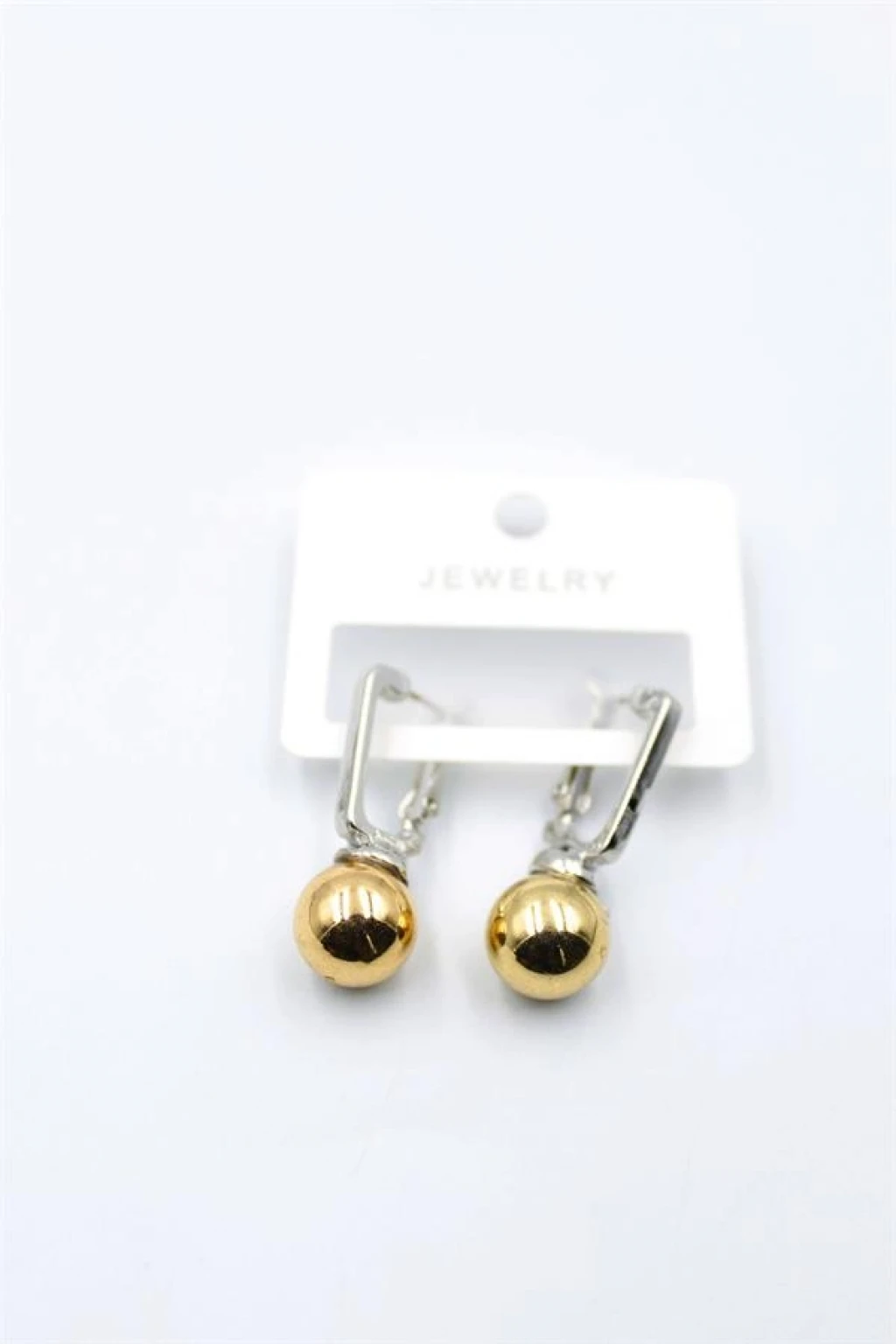 Pirinç Gold Renk Halka Model Kahverengi Boncuk Detay Kadın Küpe