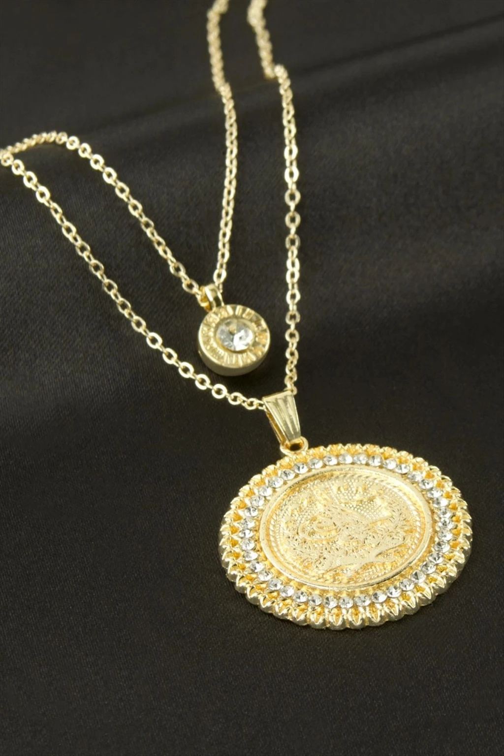 İkili Kolye; Ürün malzemesi taş ve metaldir. Ürün çift zincirden üretilmiştir. Kartıyla beraber gönderilecektir. Ürün boyu yaklaşık 50 cmdir. Aparat boyu 2,5 cmdir.