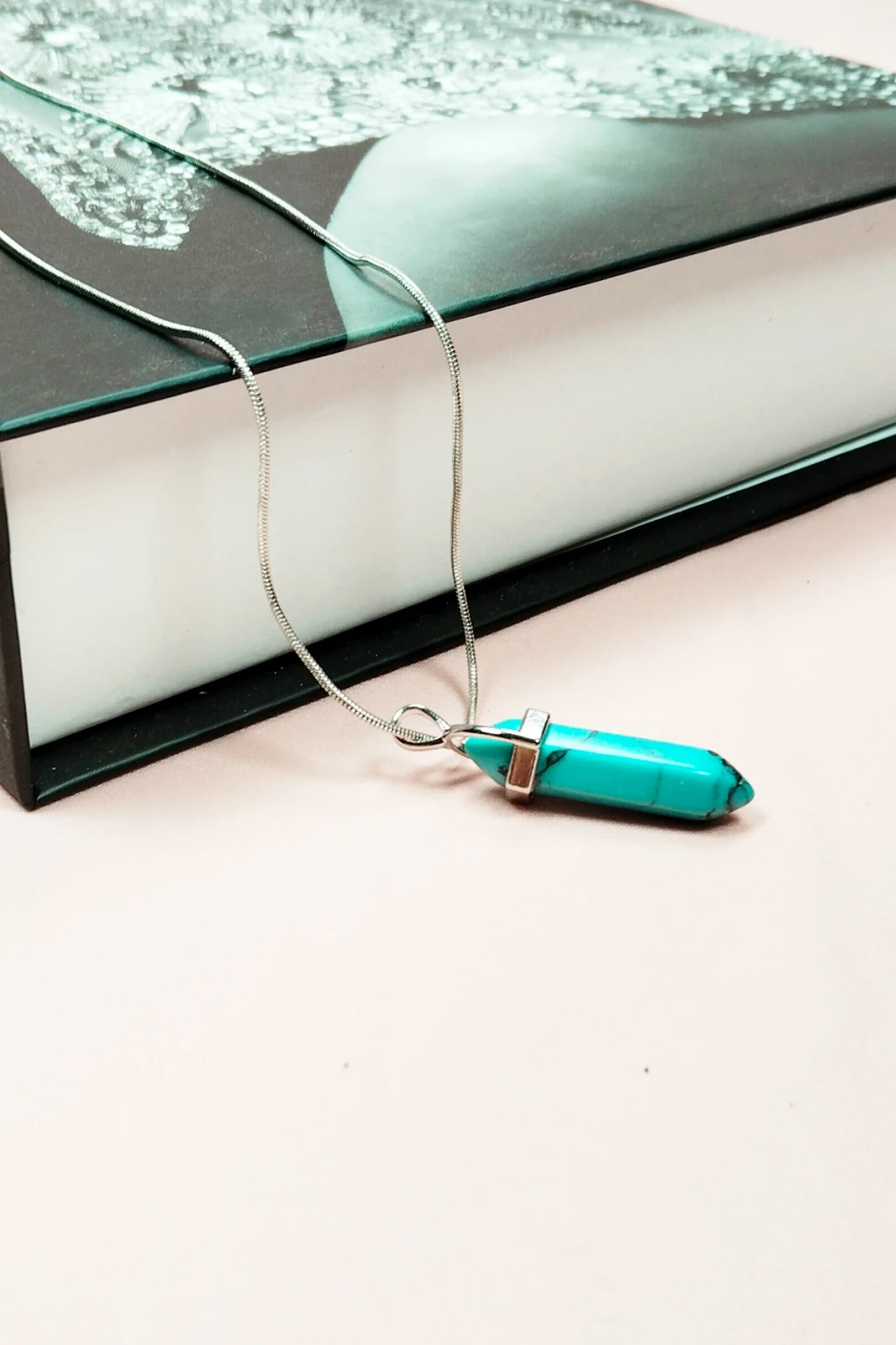 Turkuaz Doğal Taşı Zincirli El Yapımı Tasarımlı Kolye Uç: 3,5 cm Zincir: 20 cm Kutulu