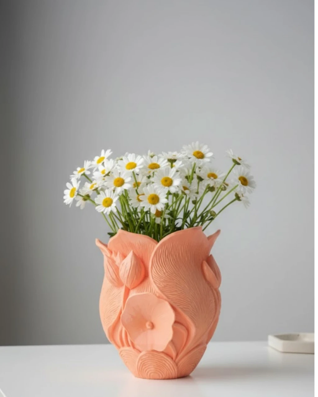 Bu 3D turuncu çiçekli vazo, sanatsal yüzey dokusu ve modern tasarımı ile ev dekorasyonunda şık bir tamamlayıcıdır. Çiçeksiz ya da çiçekli kullanıma uygundur.Minimal ama etkileyici bir dekor arayanlar için özel olarak tasarlanmıştır.