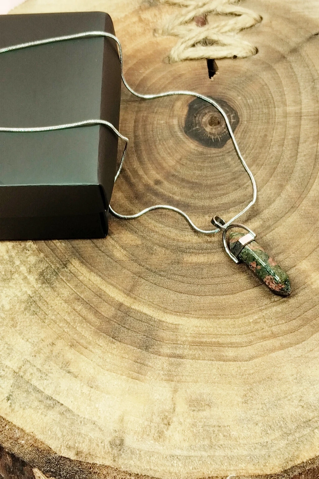 Unakit Doğal Taşı Zincirli El Yapımı Tasarımlı Kolye Uç: 3,5 cm Zincir: 20 cm Kutulu