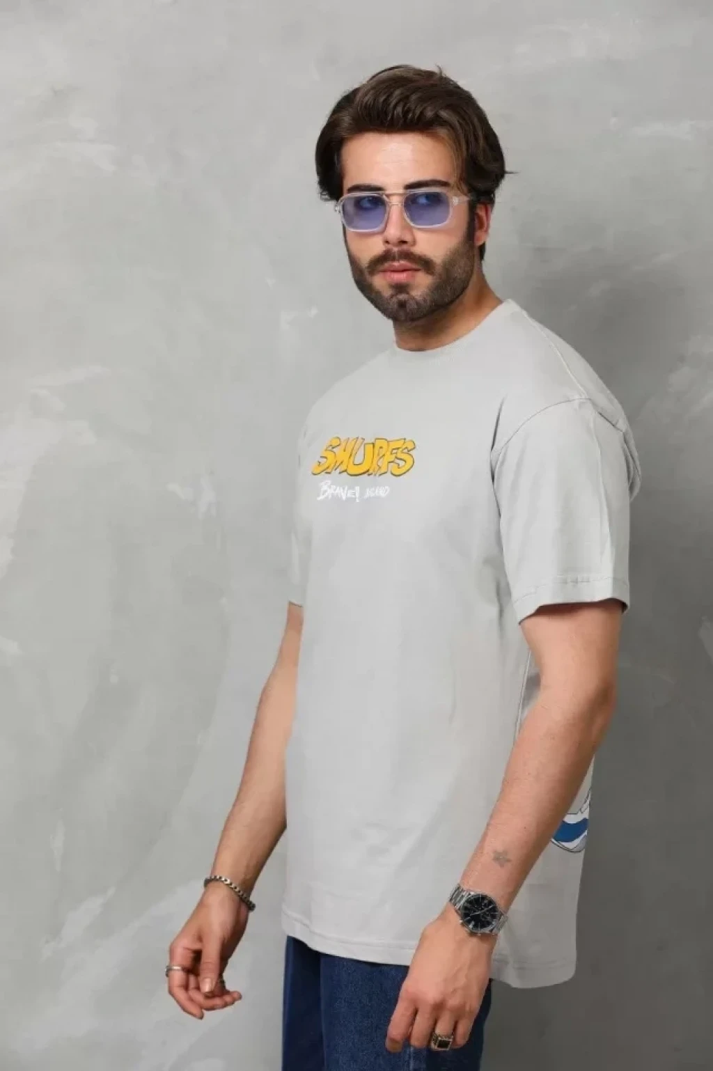 ieg™ Unisex Basic Bisiklet Yaka Oversize T-Shirt - Gri