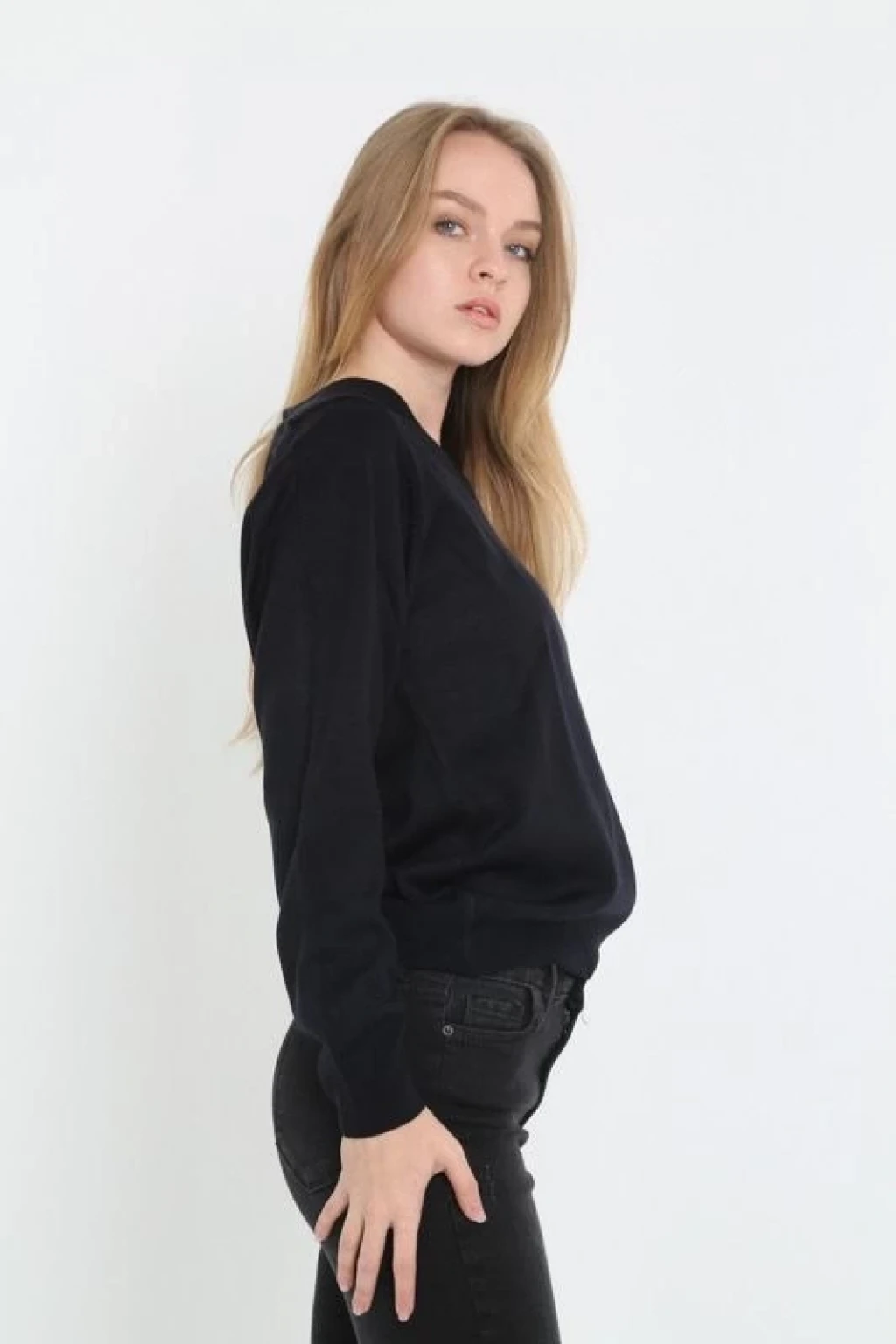 ieg™ Uzun Kol V Yaka Triko Kazak - Indigo