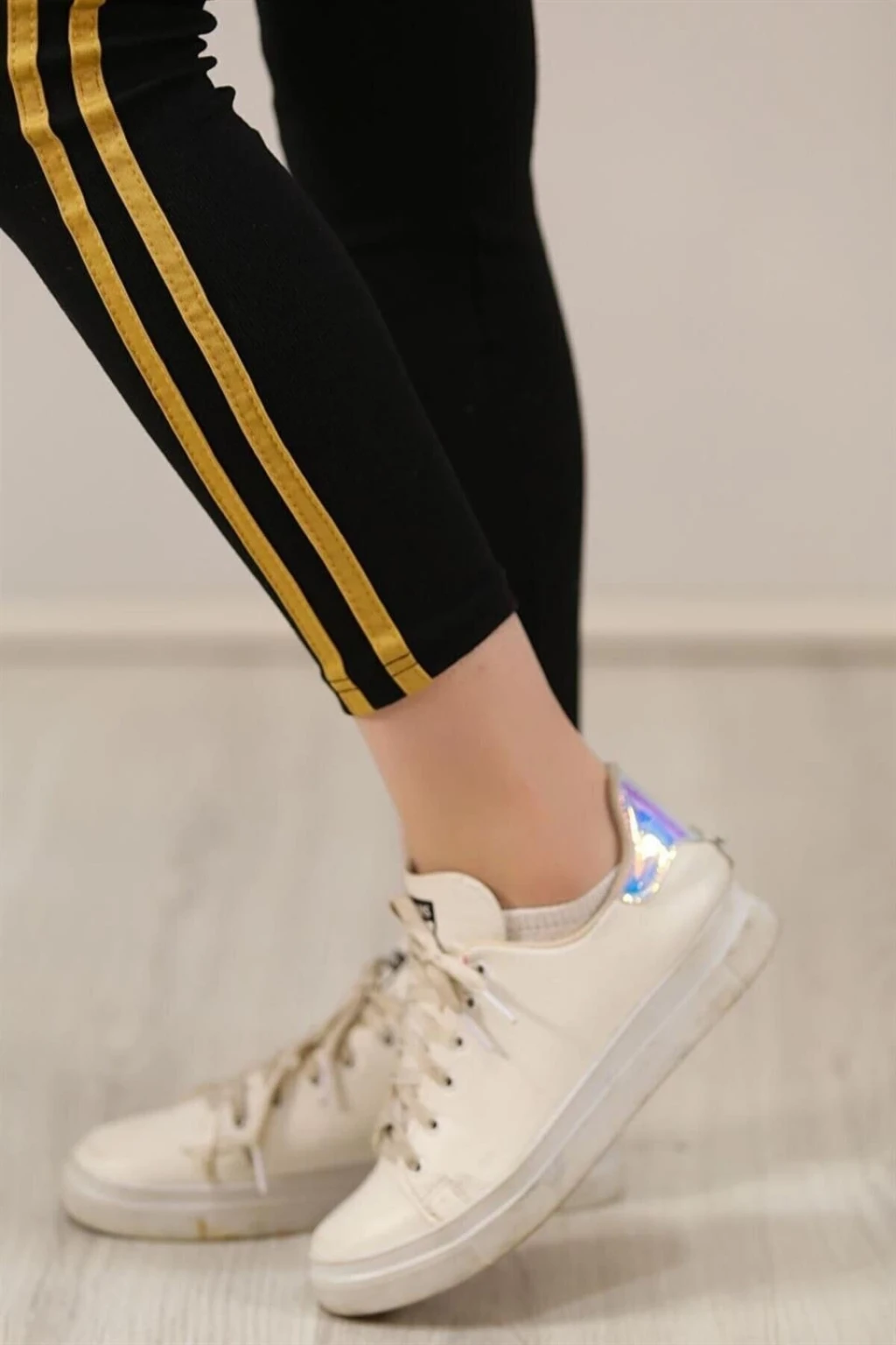 ieg™ Yanı Sarı Şeritli Tayt - Siyah -