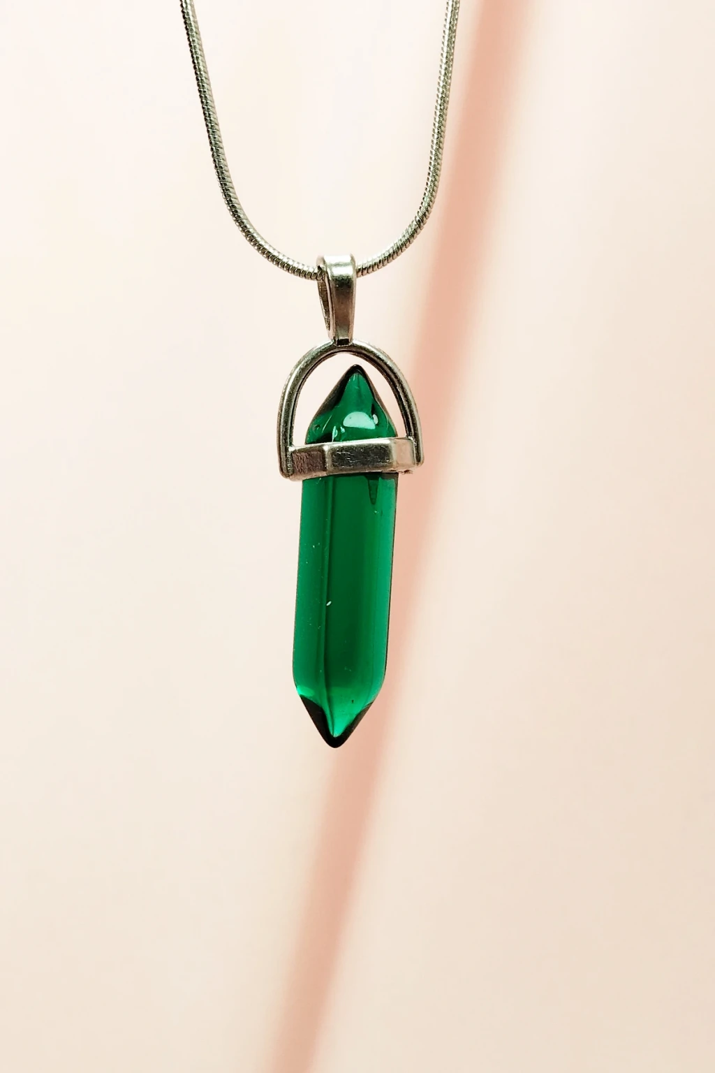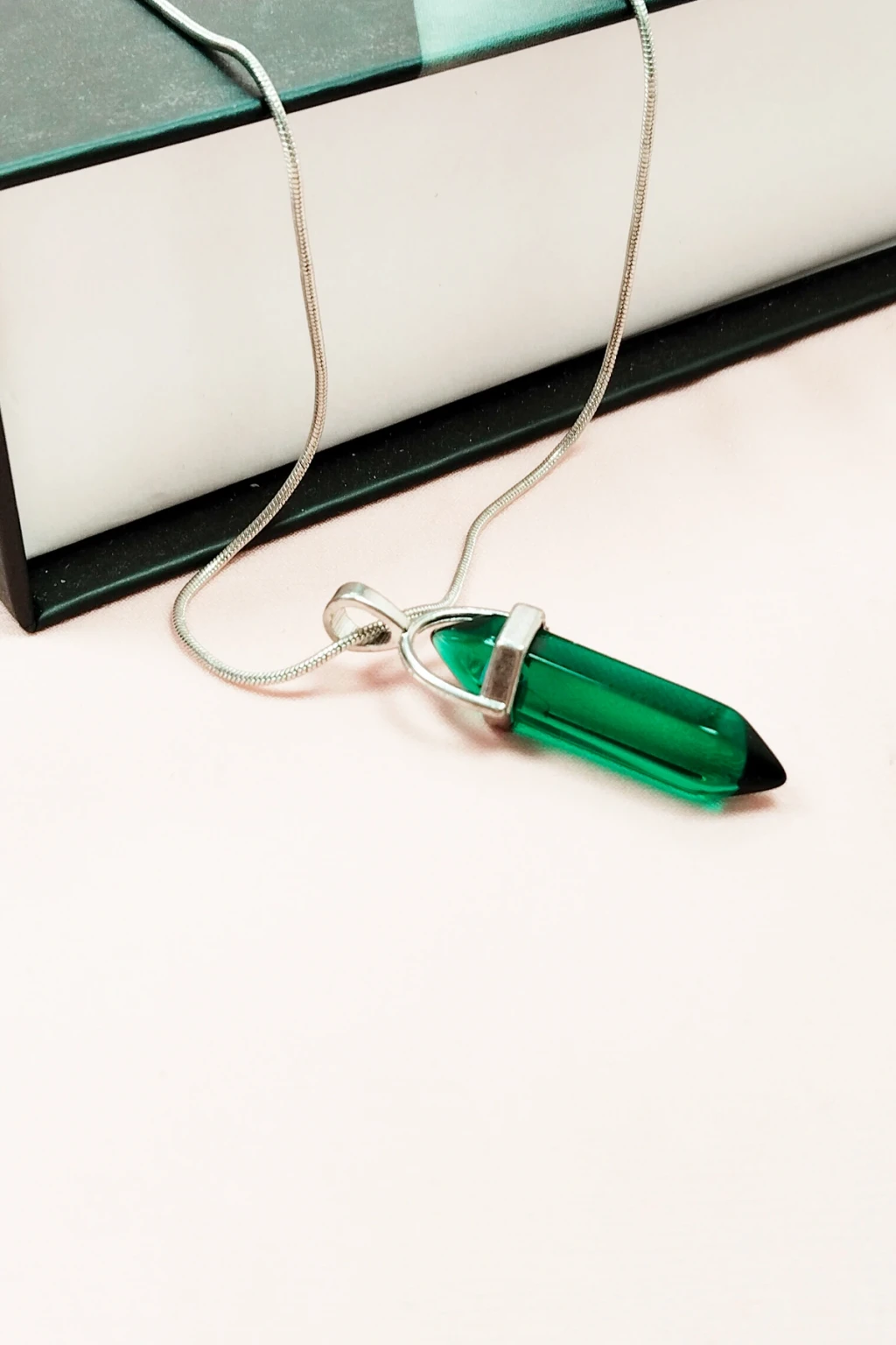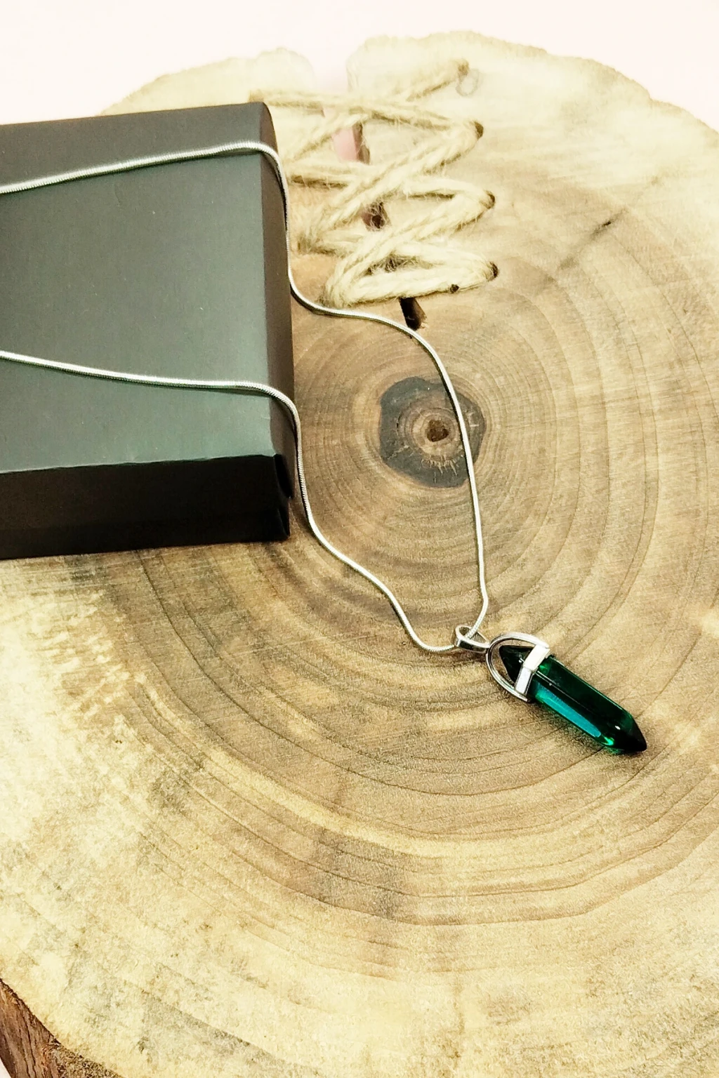 Yeşil Kuvars Doğal Taşı Zincirli El Yapımı Tasarımlı Kolye Uç: 3,5 cm Zincir: 20 cm Kutulu