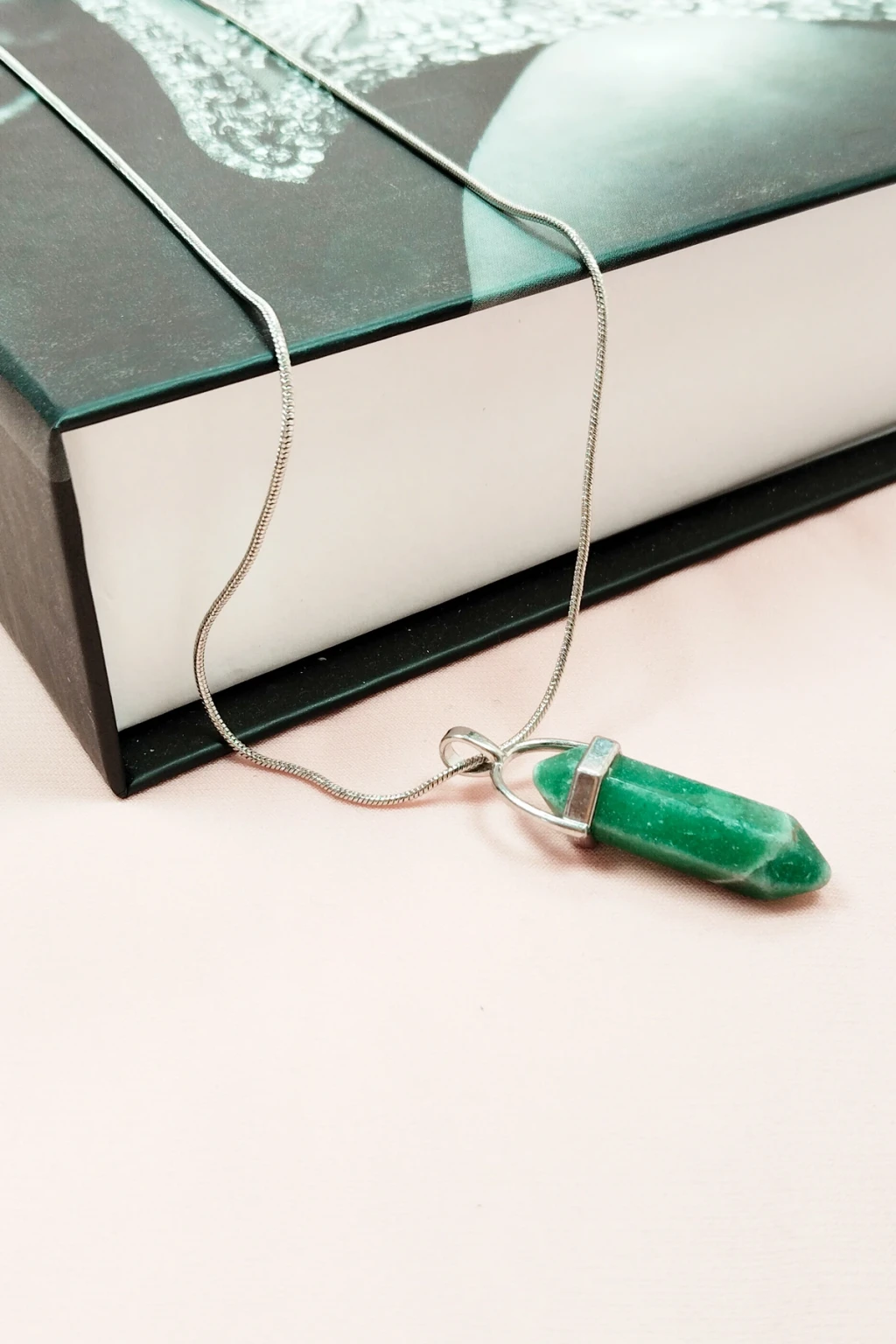 İEG® Yeşil Kuvars Doğal Taşı Zincirli El Yapımı Tasarımlı Kolye Uç: 3,5 cm Zincir: 20 cm Kutulu
