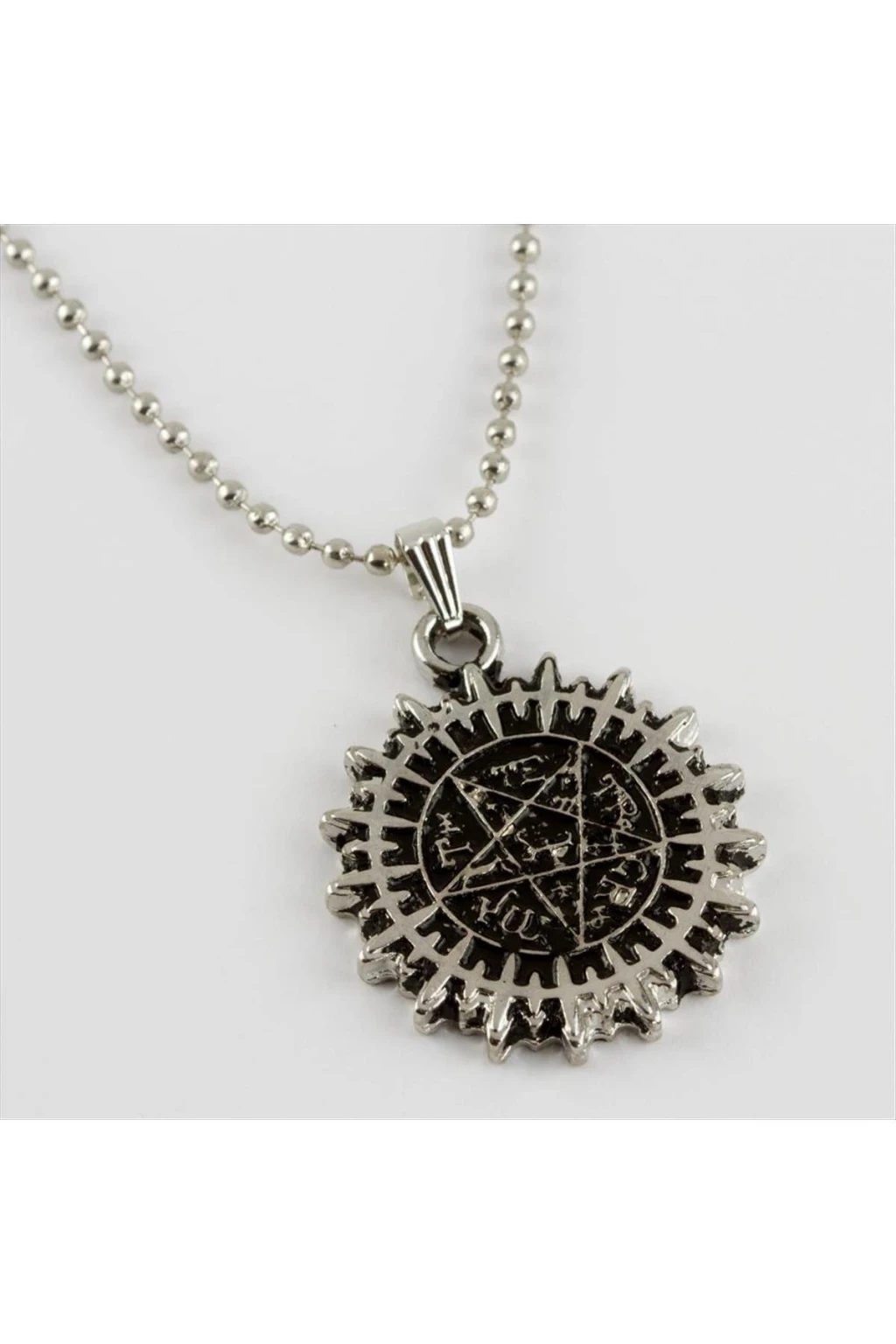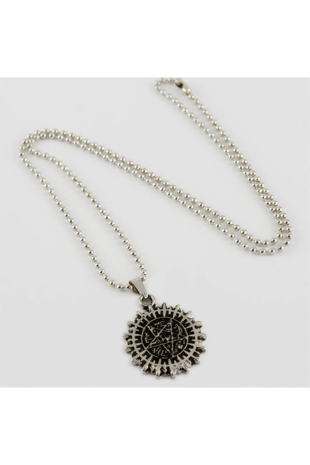 Kolye; Malzemesi metal ve top zincirdir. Zincir uzunluğu yaklaşık 66 cmdir.