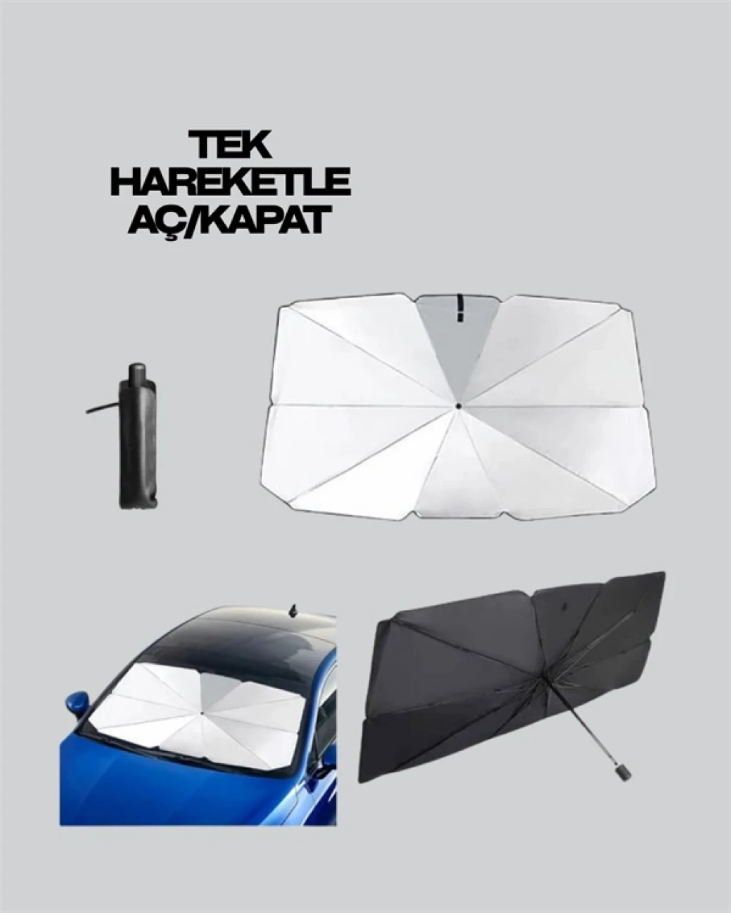 Yaz aylarında güneşin doğrudan aracınıza vurması yalnızca iç mekân sıcaklığını artırmakla kalmaz, aynı zamanda direksiyon, koltuklar, ekranlar ve torpido gibi parçaların zamanla solmasına, çatlamasına ya da zarar görmesine neden olabilir. Tüm bu sorunlara karşı etkili bir çözüm sunan bu katlanabilir ön cam güneşliği, araç sahiplerinin en büyük yardımcısı olmaya aday.Kalınlaştırılmış ve özel kaplamalı kumaşı sayesinde, yüksek ısıyı ve zararlı UV ışınlarını araç içine geçirmeden yansıtır. Böylece araç içi sıcaklık ciddi şekilde düşer; koltuklara, direksiyona ve elektronik aksama zarar gelmez. Kumaş yüzeyi solmaya dayanıklıdır, uzun süreli kullanımda dahi ilk günkü performansını korur.Güçlü cam elyaf iskeleti, güneşliğin sağlam ve dengeli durmasını sağlar. Kolay deforme olmayan bu yapı sayesinde ürün yıllar boyu güvenle kullanılabilir. Güneşlik, 360° dönebilen esnek şemsiye sapı ile farklı açılara uyum sağlar, böylece tüm ön camı boşluksuz şekilde kaplayarak tam koruma sunar.Kullanımı son derece pratik: Herhangi bir kurulum gerekmeden saniyeler içinde açılıp kapanabilir. Kullanmadığınızda kolayca katlanarak minimal yer kaplar; torpido gözüne, koltuk altına veya kapı ceplerine rahatça yerleştirilebilir. İki farklı boy seçeneği sayesinde sedan, SUV ve hafif ticari araçlarla uyumludur.Sadece yaz sıcağından değil, zararlı güneş ışınlarının uzun vadede oluşturduğu hasarlardan da korunmak için tercih edebileceğiniz bu ön cam güneşliği, araç içi konforu ve güvenliği bir üst seviyeye taşır.