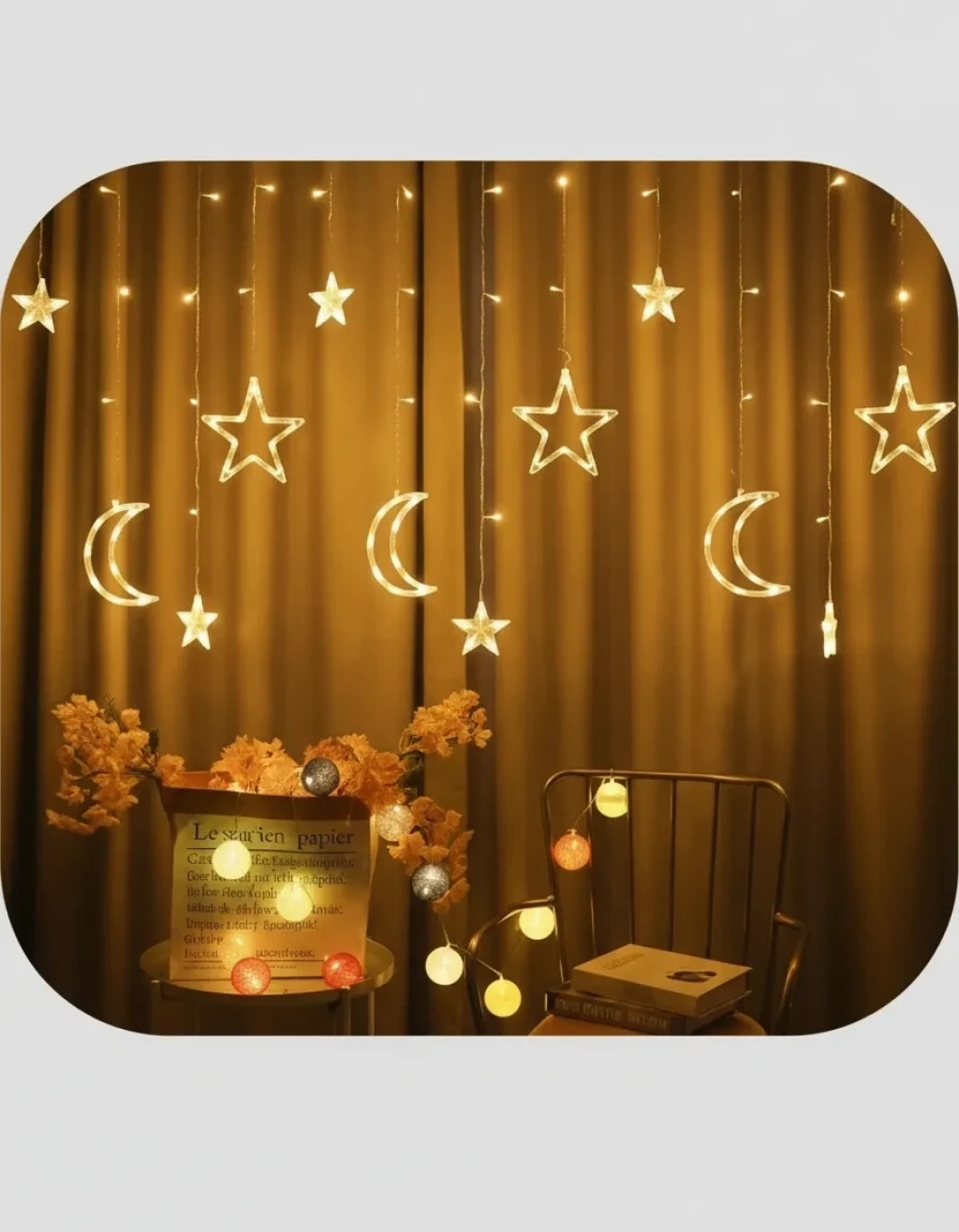Yıldız ve Ay Figürlü Prizli Perde LED Işık, dekorasyonuna romantik ve estetik bir hava katmak isteyen kullanıcılar için geliştirilmiş modern bir aydınlatma çözümüdür. Yıldız ve ay detaylarıyla tasarlanan bu perde led, bulunduğu ortamda sıcak ve masalsı bir atmosfer oluşturur. Özellikle loş ışıkta sunduğu yumuşak aydınlatma sayesinde huzurlu bir ambiyans sağlar.Ürün toplamda 126 adet LED ışık ile donatılmıştır. LED’lerin dengeli ışık dağılımı, göz yormayan bir aydınlatma sunar. Enerji verimli yapısı sayesinde dekoratif kullanımda ideal bir performans sergiler. İki farklı aydınlatma modu ile kullanım imkânı sunar. Sabit ışık modu sakin ve romantik bir ortam oluştururken, yanıp sönme modu dekorasyona hareket ve canlılık katar.Prizden çalışması sayesinde kesintisiz ışık verir ve uzun süreli kullanımlar için uygundur. Pil veya batarya ihtiyacı olmadığı için kullanım sırasında ek masraf oluşturmaz. Bu özellik, özellikle organizasyonlar ve ticari mekanlar için büyük bir avantaj sağlar. Evde, ofiste, kafe ve restoranlarda rahatlıkla kullanılabilir.PVC kaplı tel yapısı güvenli kullanım sunar. Isınma yapmayan yapısı sayesinde uzun süre açık kalsa bile risk oluşturmaz. Kurulumu son derece pratiktir. Hafif yapısı sayesinde pencere, duvar, balkon veya kapı önlerine kolayca asılabilir.Ramazan dekorasyonları, düğünler, nişanlar, doğum günü partileri ve yılbaşı süslemeleri için ideal bir tercihtir. Estetik tasarımı ve pratik kullanımı ile dekorasyonunuzu tamamlar.