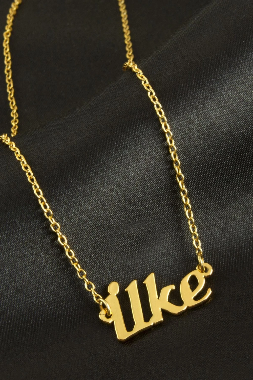 İlke isimli kolye. İsimli kolye pirinç madeninden ve altın kaplamalıdır. Kişiye özel üretilmektedir.Yazdırmak istediğiniz ismi bize mesaj olarak iletmeniz gerekmektedir. Kullanıma bağlı olarak uzun süre kullanıma uygundur. Ürün malzemesi 1.sınıf kalitededir. Ürün ve zinciri sarı renktedir. Ürün zincir boyu 45 cm ve ürün üzerindeki isimler yaklaşık 3 cmdir. İsim boyları ürün ismine göre degişiklik göstermektedir.