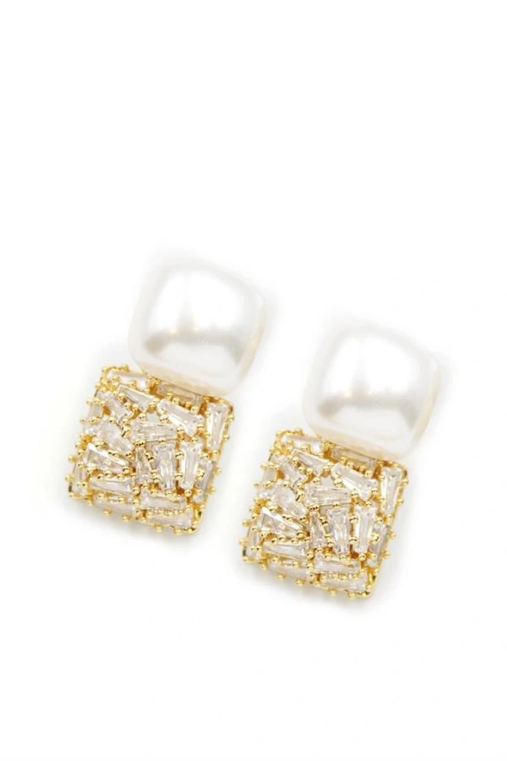 İnci Baget Taşlı Küpe - Altın