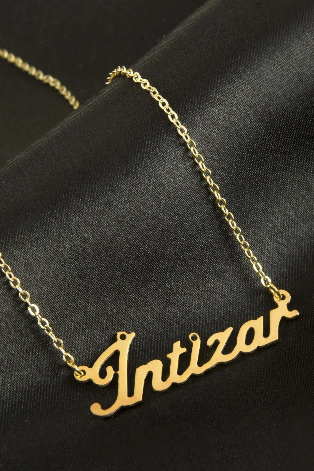 İntizar İsimli Kolye. İsimli kolye pirinç madeninden ve altın kaplamalıdır. Kişiye özel üretilmektedir.Yazdırmak istediğiniz ismi bize mesaj olarak iletmeniz gerekmektedir. Kullanıma bağlı olarak uzun süre kullanıma uygundur. Ürün malzemesi 1.sınıf kalitededir. Ürün ve zinciri sarı renktedir. Ürün zincir boyu 45 cm ve ürün üzerindeki isimler yaklaşık 3 cmdir. İsim boyları ürün ismine göre degişiklik göstermektedir.