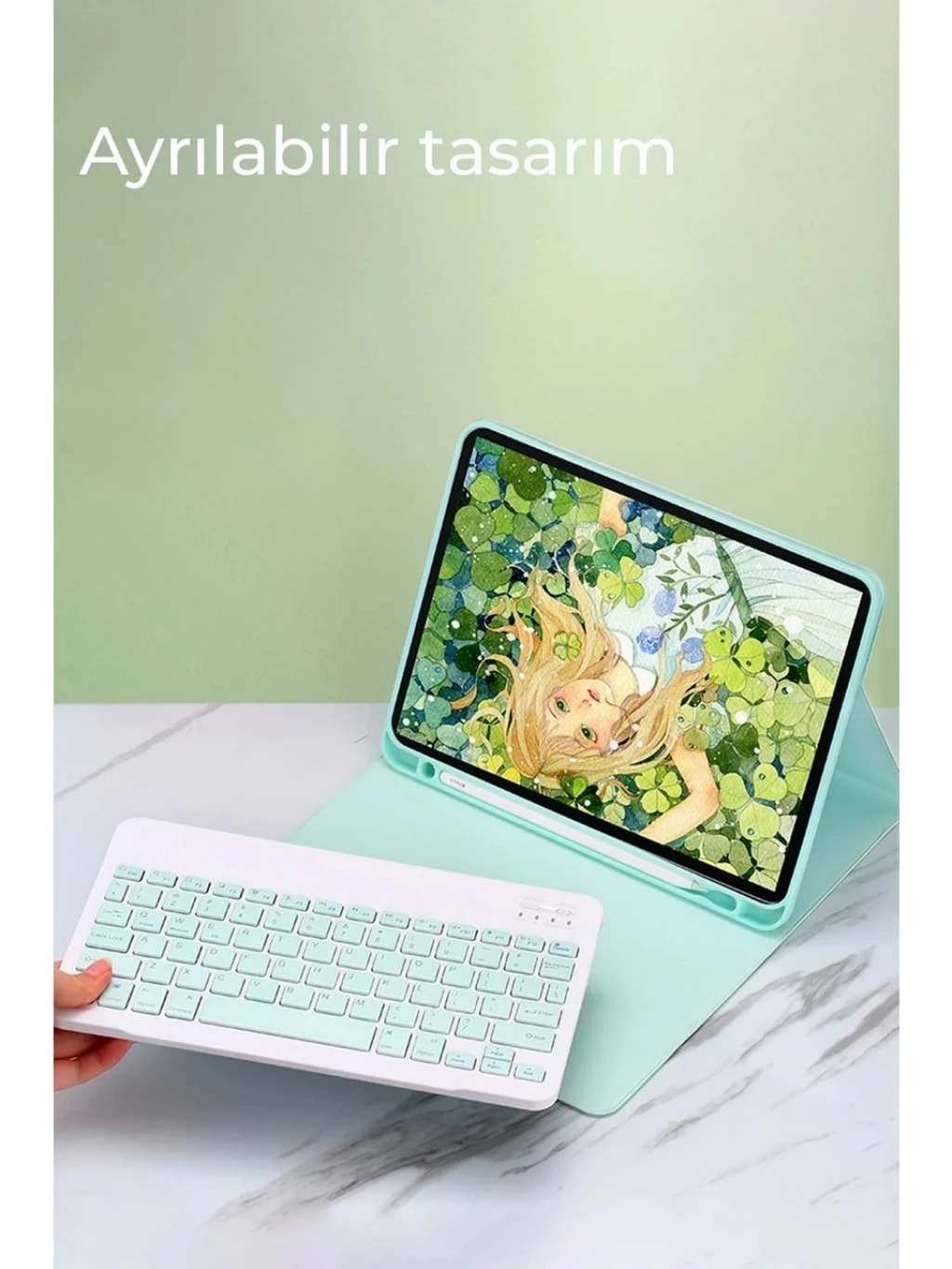 iPad 10.2 (9.nesil) Kılıf KC01 Smart Klavyeli Tablet Kılıfı - Lila