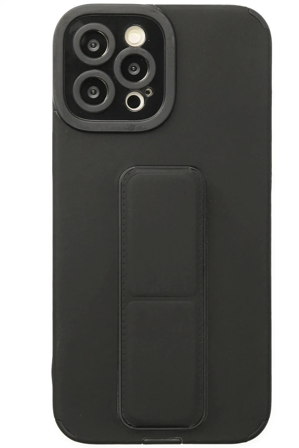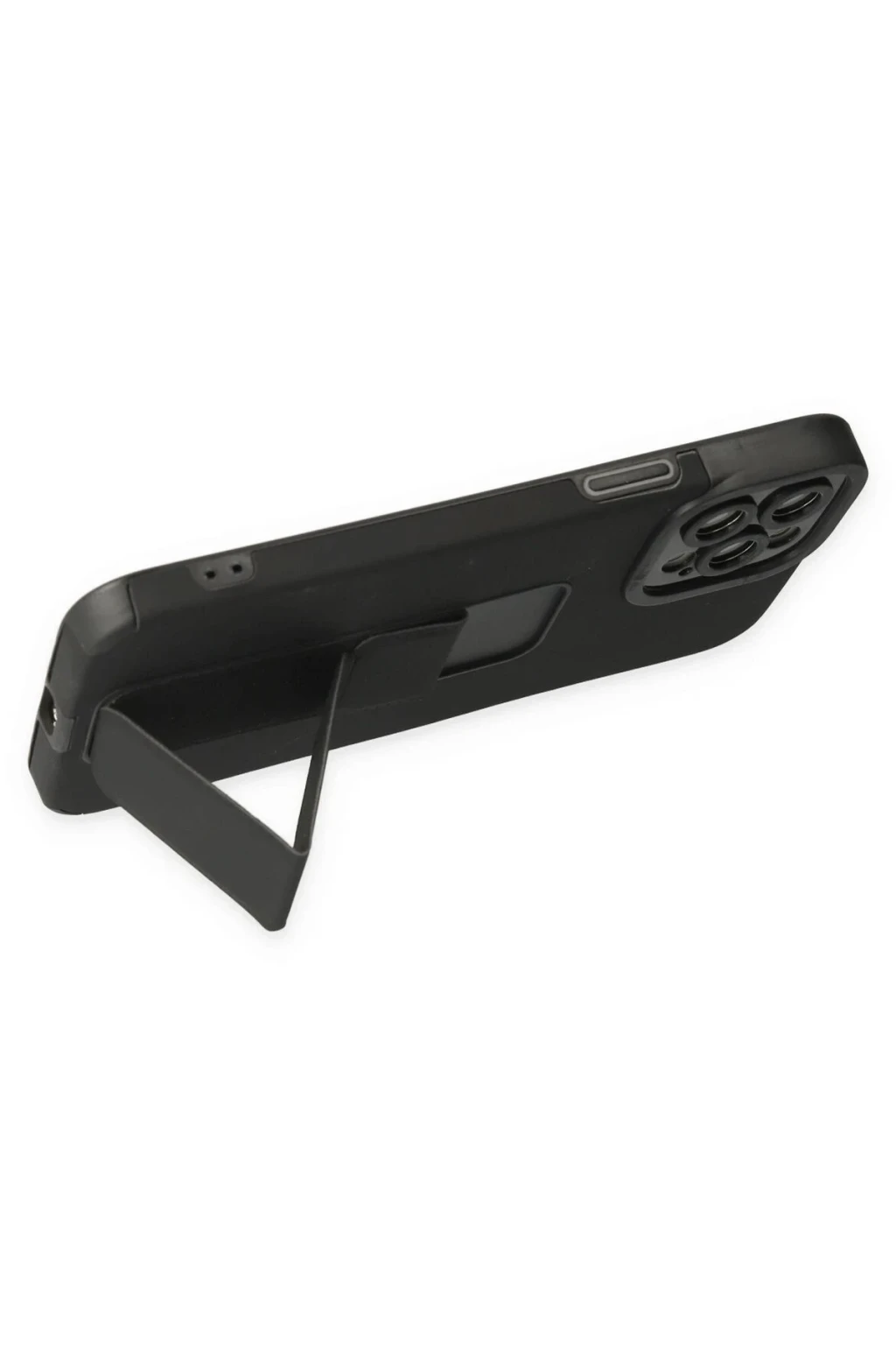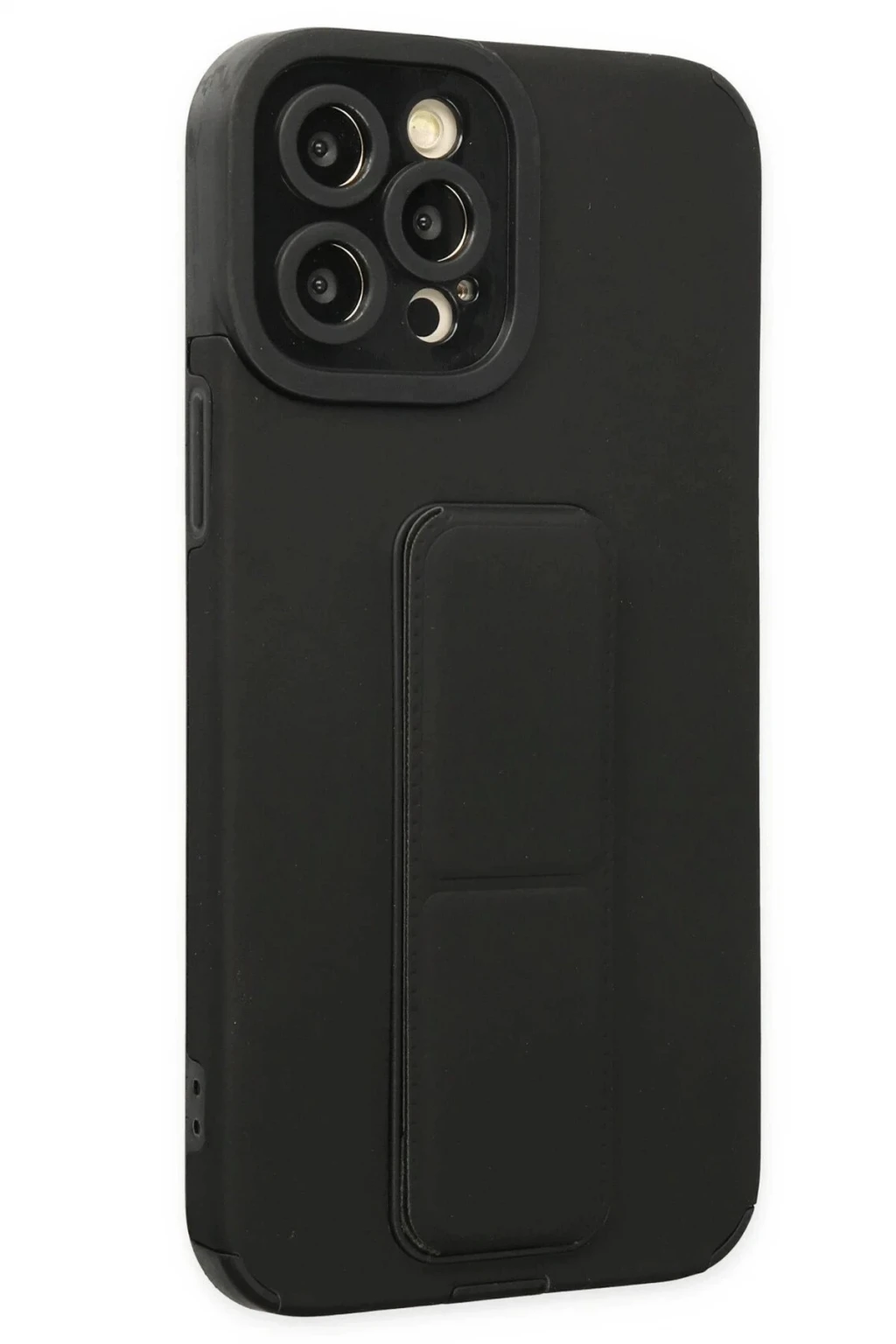 iPhone 12 Pro Kılıf Mega Standlı Silikon - Siyah