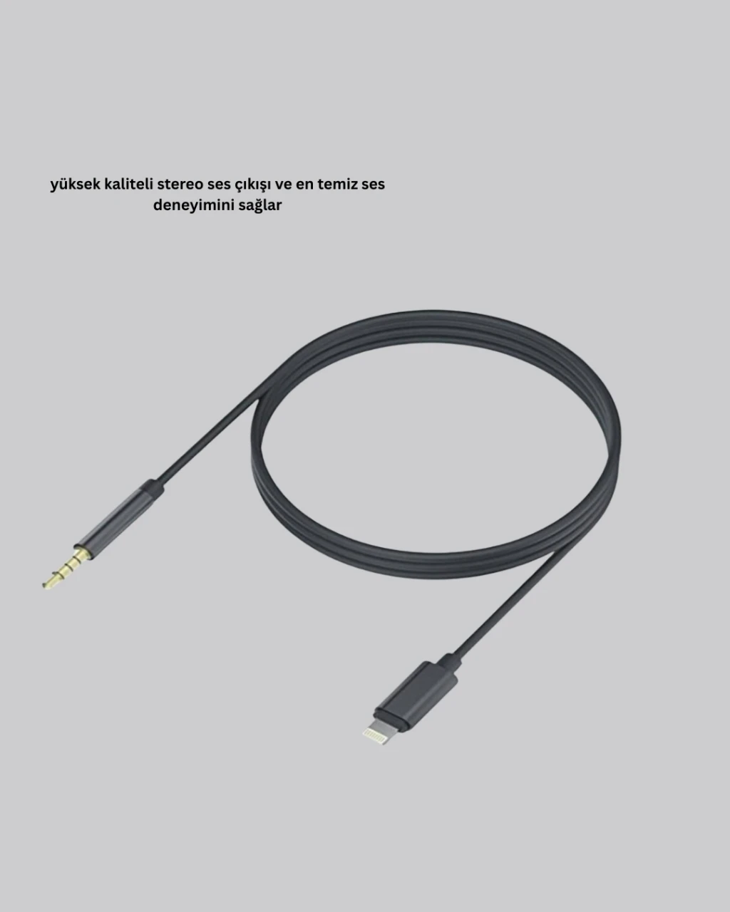 Lightning girişini 3.5 mm Aux bağlantısına dönüştüren bu kablo, iPhone 14 ve altı cihazların tamamıyla uyumludur ve Lightning girişli telefonlarda Aux ihtiyacını ortadan kaldırır. Modern cihazlarda kulaklık girişinin bulunmaması sebebiyle ortaya çıkan tüm ses aktarım problemlerini pratik biçimde çözer. Hem araç içinde hem evde hem de taşınabilir ses sistemlerinde kullanılabilecek çok yönlü bir ses adaptörüdür.1 metre uzunluğundaki kablo, kullanıcıya geniş bir hareket alanı sağlar. Telefonunuzu cebinizde, çantanızda veya masada rahatça tutarken bağlantıyı sürdürebilirsiniz. Tüm araba modellerindeki Aux girişleriyle çalışır ve temiz, net bir ses aktarımı sağlar. Ev hoparlörleri, kulaklıklar, ses mikserleri ve diğer Aux uyumlu tüm cihazlarla sorunsuz bağlantı kurar.Stereo ses aktarımı, bu kablonun en önemli özelliklerinden biridir. Ses kalitesindeki berraklık, kullanıcıya profesyonel bir deneyim sunar. Bass ve tizlerde bozulma yaşanmaz, müzikler daha dengeli ve güçlü şekilde duyulur. Film izlerken, oyun oynarken veya podcast dinlerken yüksek performans elde edilir.Kablo uçlarında kullanılan dayanıklı kaplama, uzun süreli kullanım için geliştirilmiştir. Sık takıp çıkarma, bükülme veya çekilme gibi durumlara karşı dirençlidir. Kablo yapısı hafif, esnek ve karışmayı önleyecek şekilde tasarlanmıştır.Tak-çalıştır özelliği sayesinde kurulum gerektirmez. Lightning ucunu telefona taktığınız anda 3.5 mm girişli tüm cihazlarla anında ses aktarımı sağlanır. Ses kontrolü telefondan yapılabilir ve yüksek stabiliteyle çalışır.Günlük kullanımda güvenilirlik, net ses kalitesi ve uzun ömür arayan kullanıcılar için ideal bir adaptördür. Hem araç içi hem ev hem iş ortamında rahatlıkla kullanılabilir. Bu kablo ile Lightning girişli cihazlarda Aux çıkışı ihtiyacı tamamen çözülür.